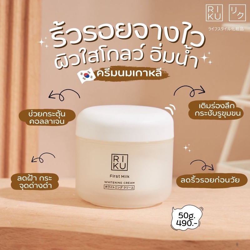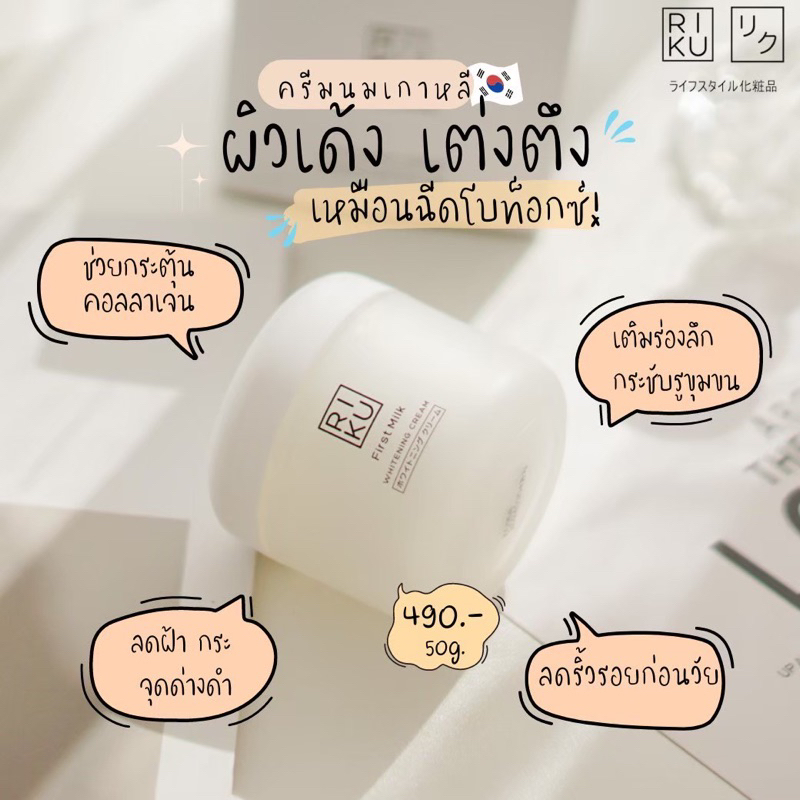(ส่งเร็วพิเศษ)ครีมนมเติมน้ำให้ผิว ชุ่มชื่น อิ่มฟู RIKU ริคุ เฟิร์ส มิลค์ ไวท์เทนนิ่ง ครีม ครีมนมเกาหลี