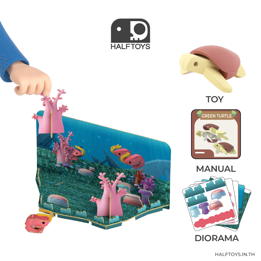 HALFTOYS (ฮาล์ฟทอยส์) Half Ocean : Green Turtle (Diorama) ของเล่นเสริมพัฒนาการเด็ก 3 ขวบขึ้นไป