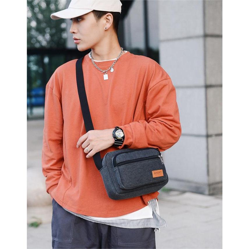(B-407)🔥 กระเป๋าสะพายข้าง กระเป๋าผ้า สไตล์เกาหลี แฟชั่นมา จุของได้เยอะ สไตล์เกาหลี เรียบง่าย มีซิป SPORT 4สี