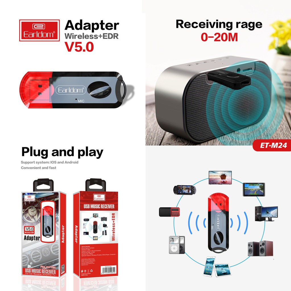 Earldom ET-M91 ET-M24 ตัวรับสัญญาณ Bluetooth สำหรับรถยนต์ ลำโพง เพื่อฟังเพลงจากโทรศัพท์มือถือ พร้อมส่ง