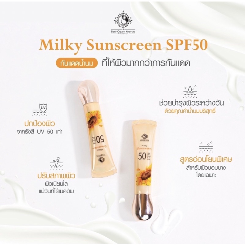 กันแดดน้ำนม เนื้อสีขาวบางเบา บ้านครูเมย์ มีบัตรตัวแทน (พร้อมส่ง+ของแถม)