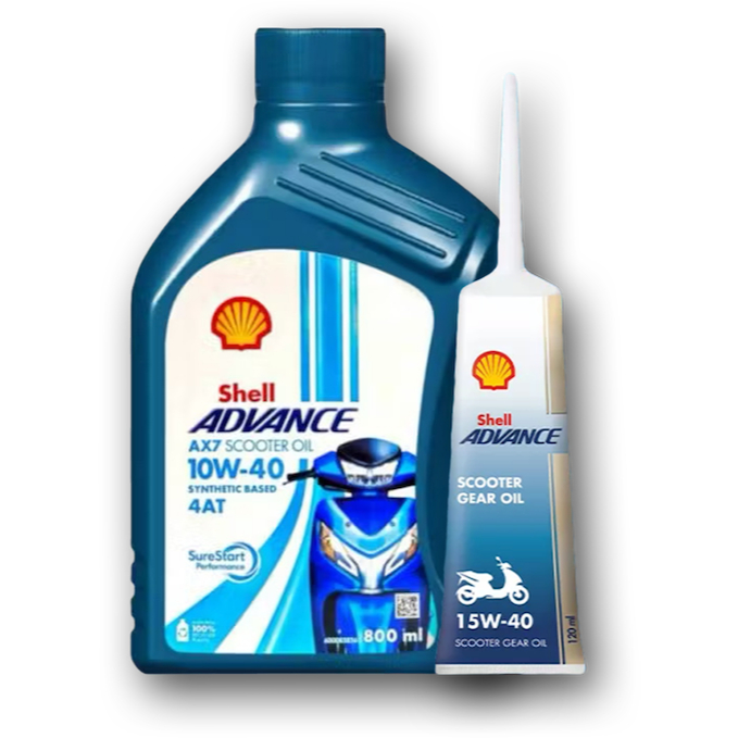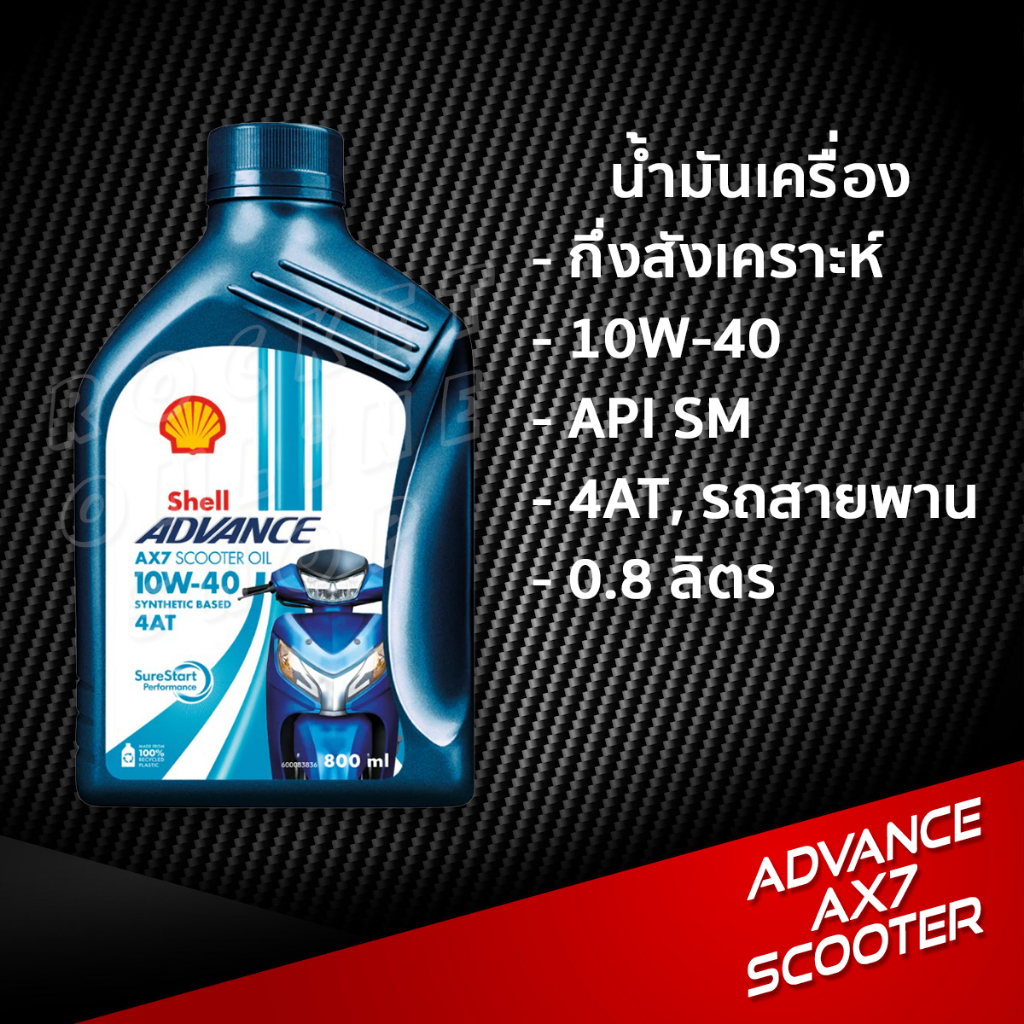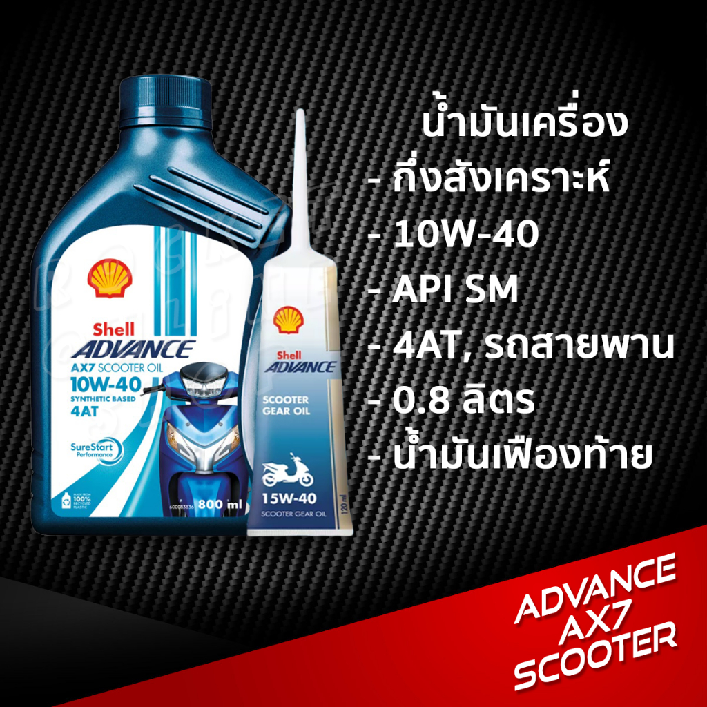 น้ำมันเครื่อง Shell Advance AX7 Scooter 0.8L. น้ำมันเฟืองท้าย 120ml. กึ่งสังเคราะห์ รถสายพาน