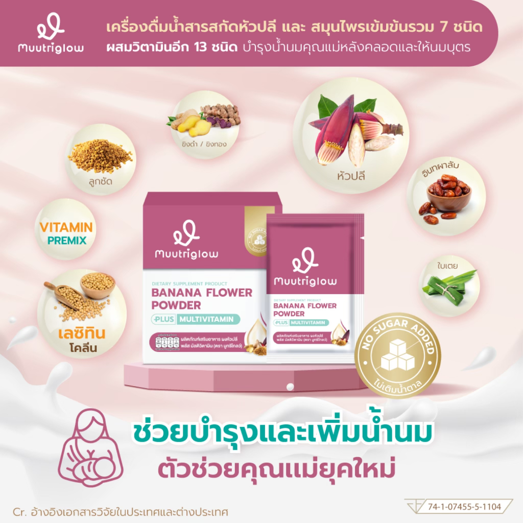 Muutriglow 1 แถม 1 อาหารเสริมเพิ่มน้ำนม บำรุงน้ำนม กระตุ้นน้ำนม ผงหัวปลีเพิ่มนม มูทริโกลว์ มิว นิษฐา