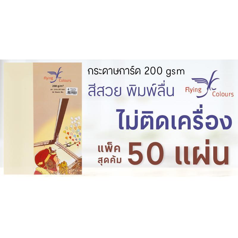 FLYING กระดาษการ์ดสี 04 A4 200แกรม #04 สีครีม (50แผ่น)