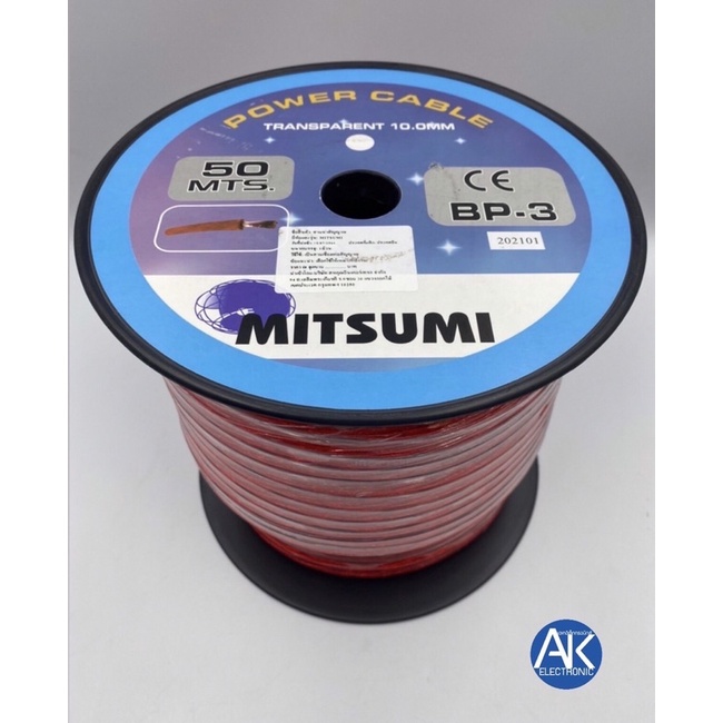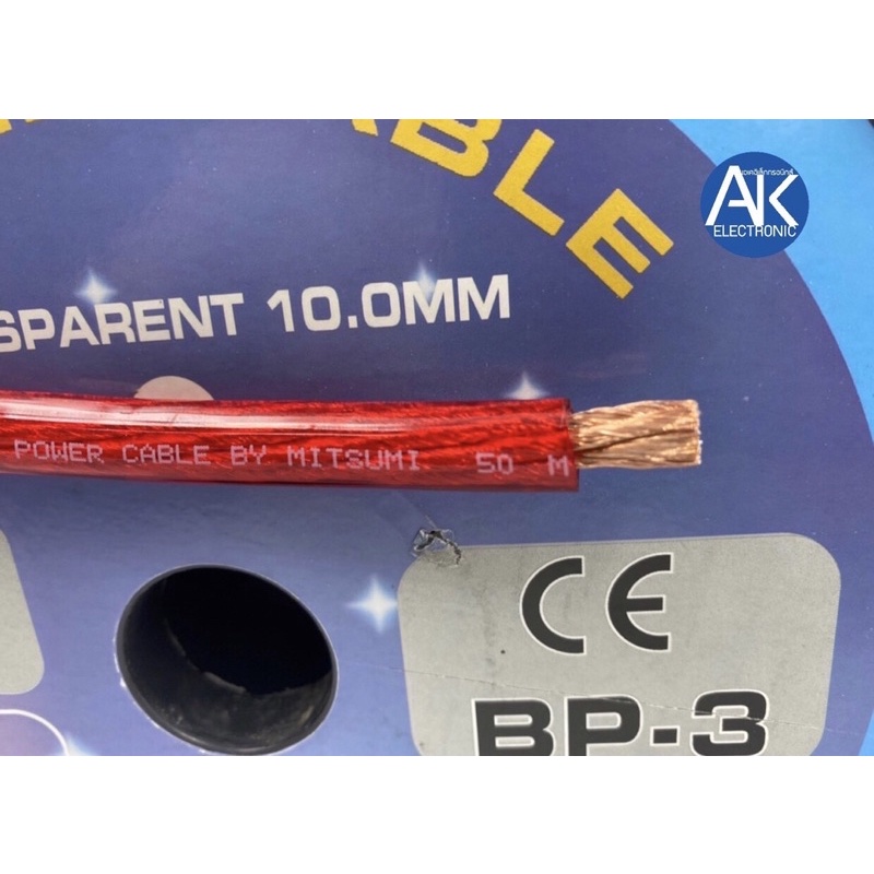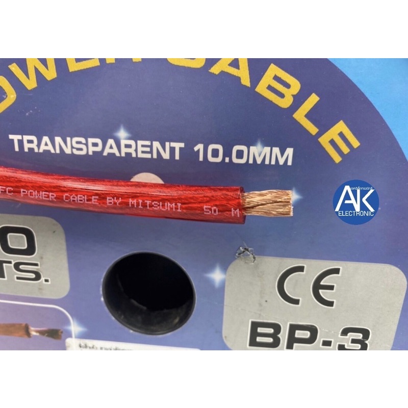 สายแบต สายแบตเตอรี่ MITSUMI BP-3 10 SQ.MM(ยกม้วน 50 เมตร)สายแบตรถยนต์ ติดตั้งเครื่องเสียง 10 มิล เต็ม ทองแดงผสมคุณภาพสูง