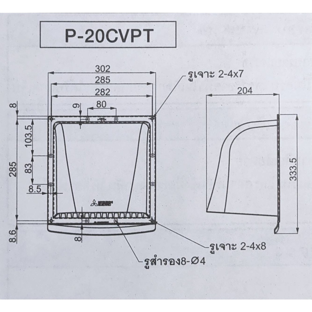 MITSUBISHI ฝาครอบท่อพัดลมระบายอากาศ รุ่น P-20CVPT ขนาด 8 นิ้ว ของแท้