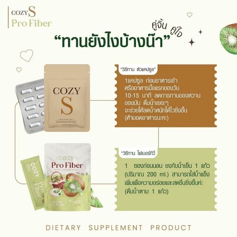 เซ็ทลีน Cozy s + ไฟเบอร์กีวี่ คุมหิว ขับถ่ายคล่อง ขายดีมาก