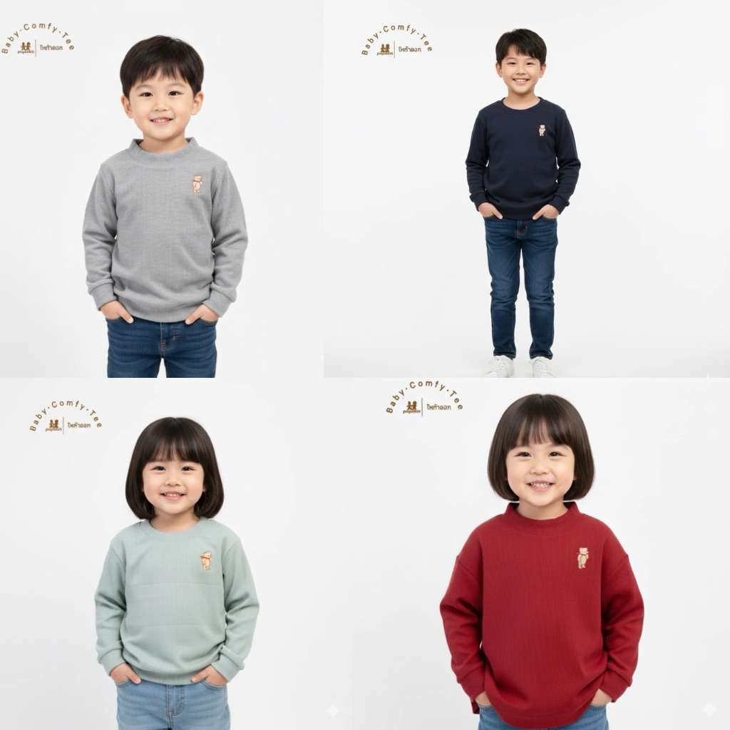 POGADOTT เสื้อแขนยาวเด็ก สเวตเตอร์เด็กปักหมีเท็ดดี้ ผ้าร่อง(2-12 ปี) เนื้อไม่หนามาก ใส่ได้ตลอดทั้งปีค่ะ