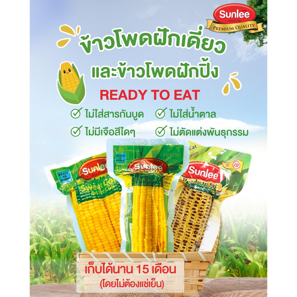 [แพ็ค 3 ชิ้น] ซันลี ข้าวโพดหวานชนิดฝักปิ้ง 300 กรัม Grilled Corn Cob (Sunlee Brand) 300 g