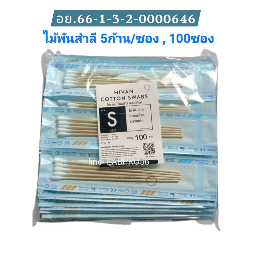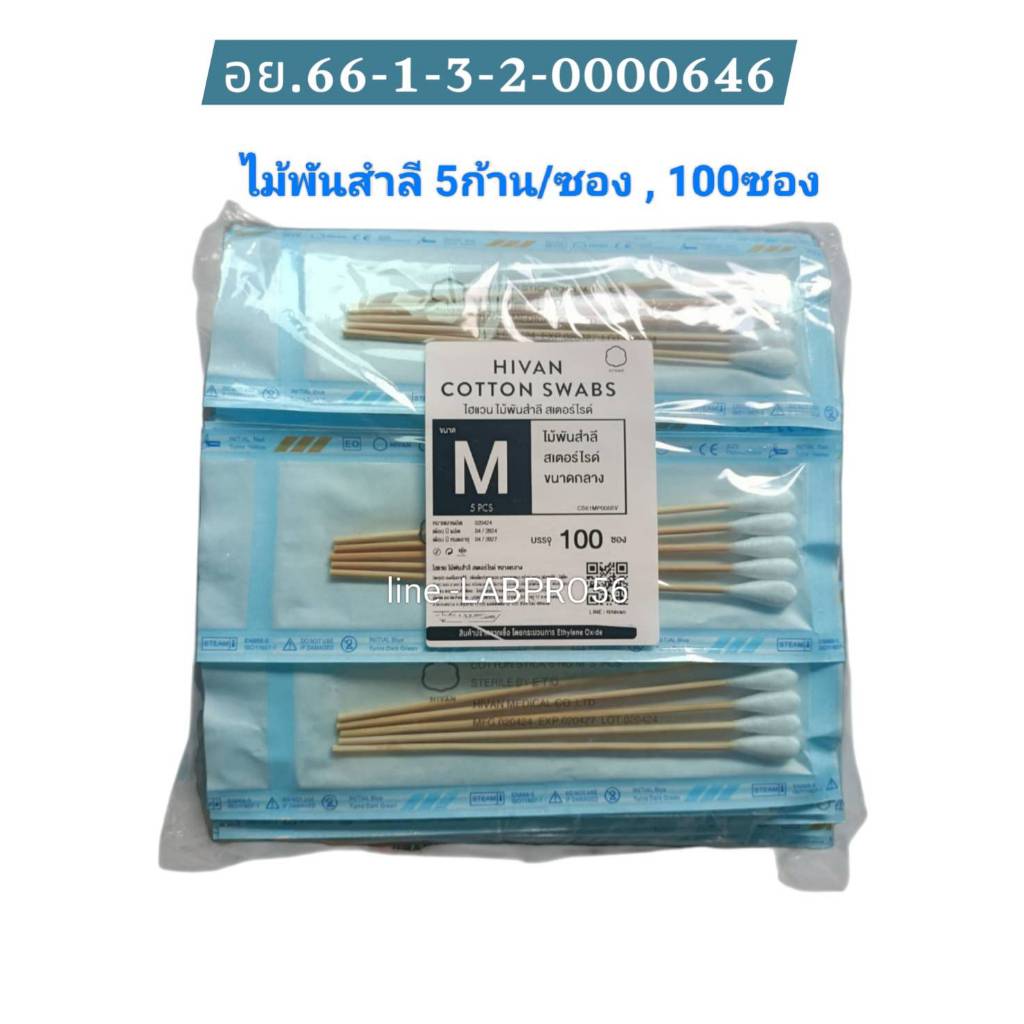 HIVAN-5ก้าน-ไม้พันสำลีสเตอร์ไรด์ cotton swabs sterile 5 pcs 100 ซอง ไม้พันสำลี