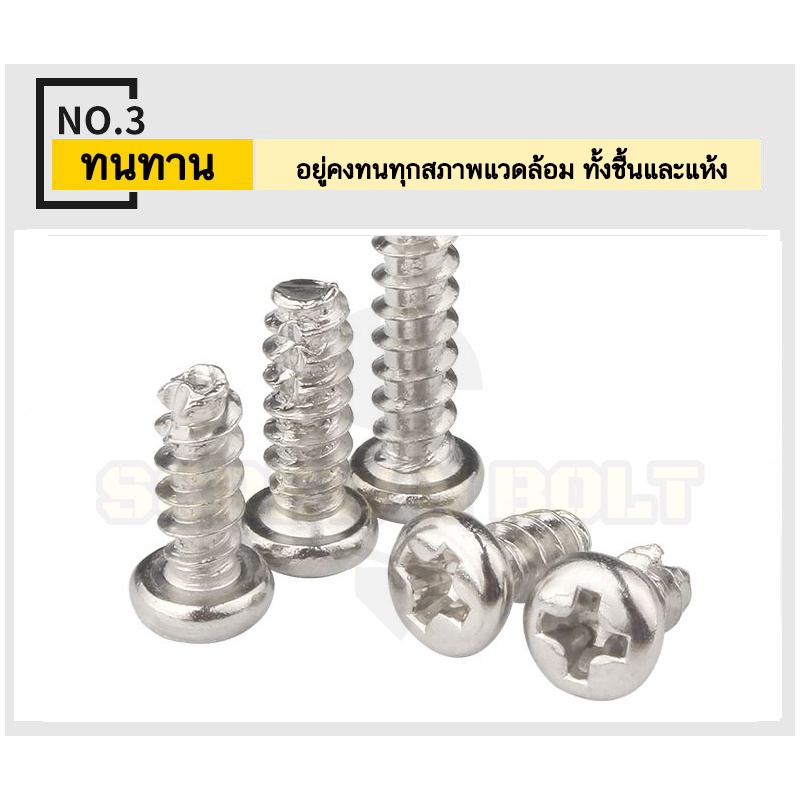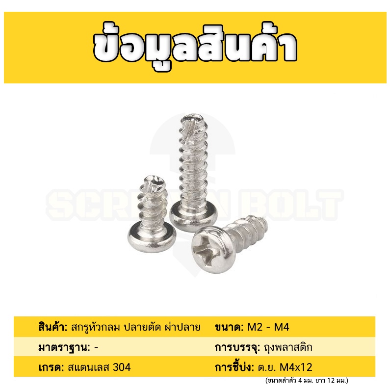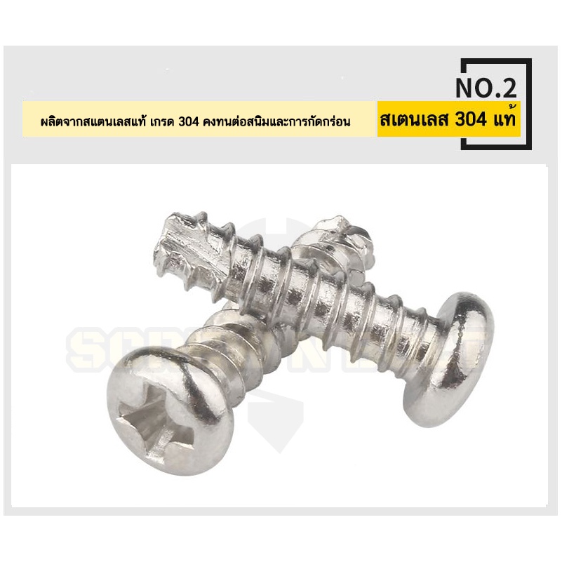 สกรู น็อต หัวกลม แฉก + ขันพลาสติก สแตนเลส 304 เกลียวปล่อย ปลายตัด ผ่าปลาย M2 M2.3 M2.6 M3 M4