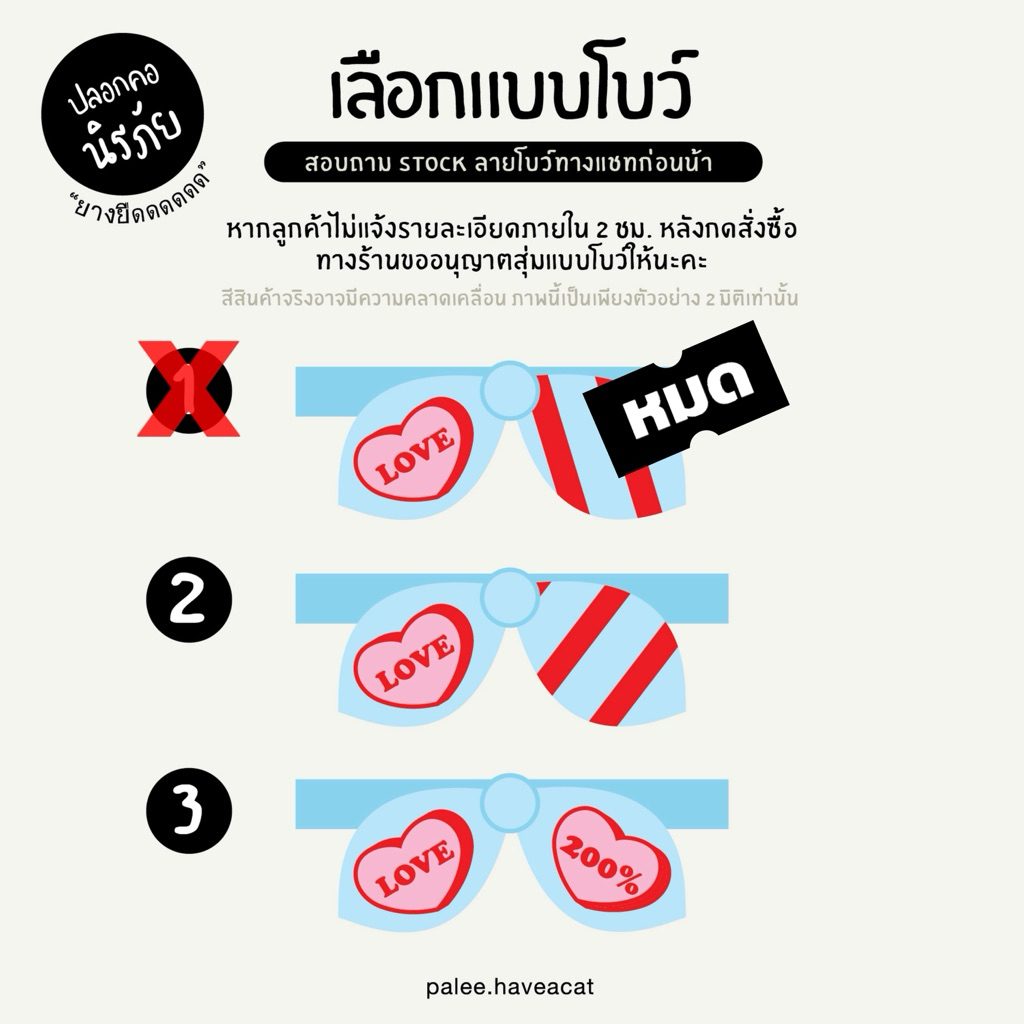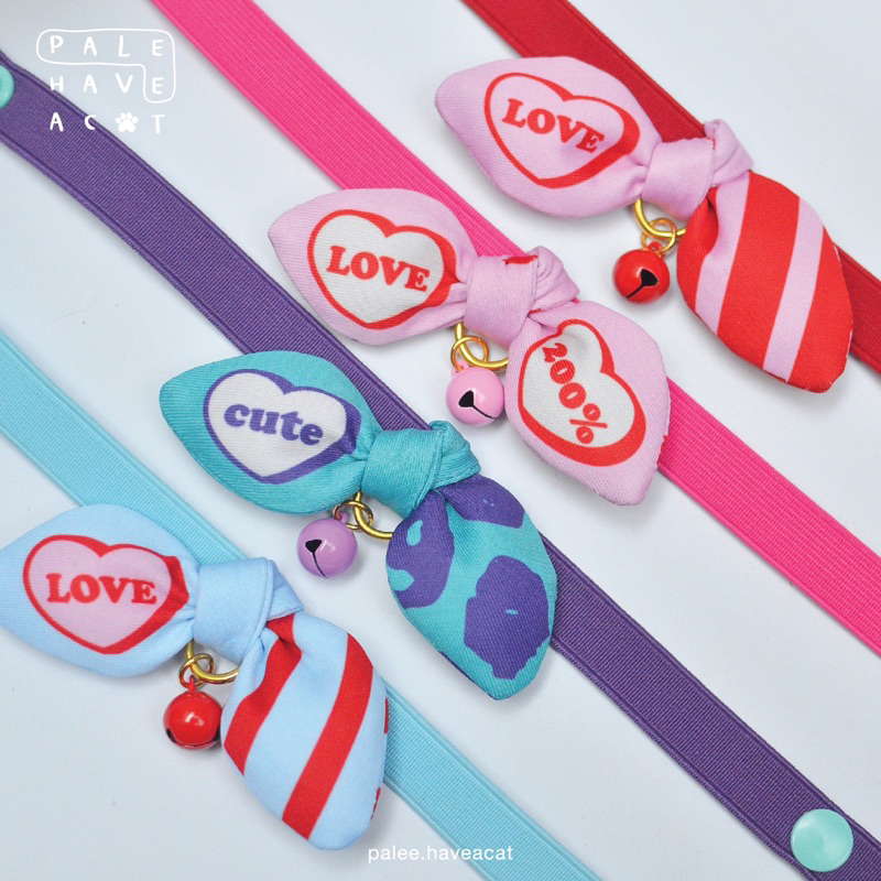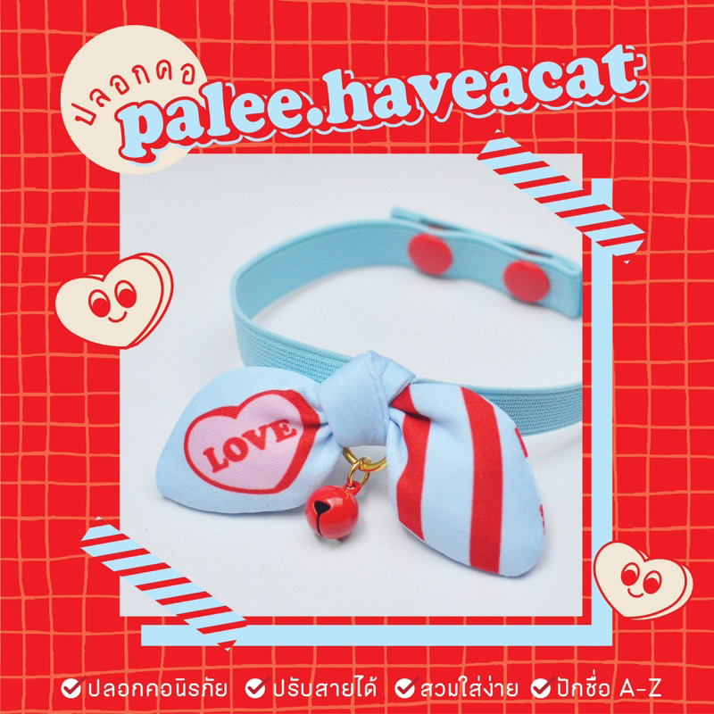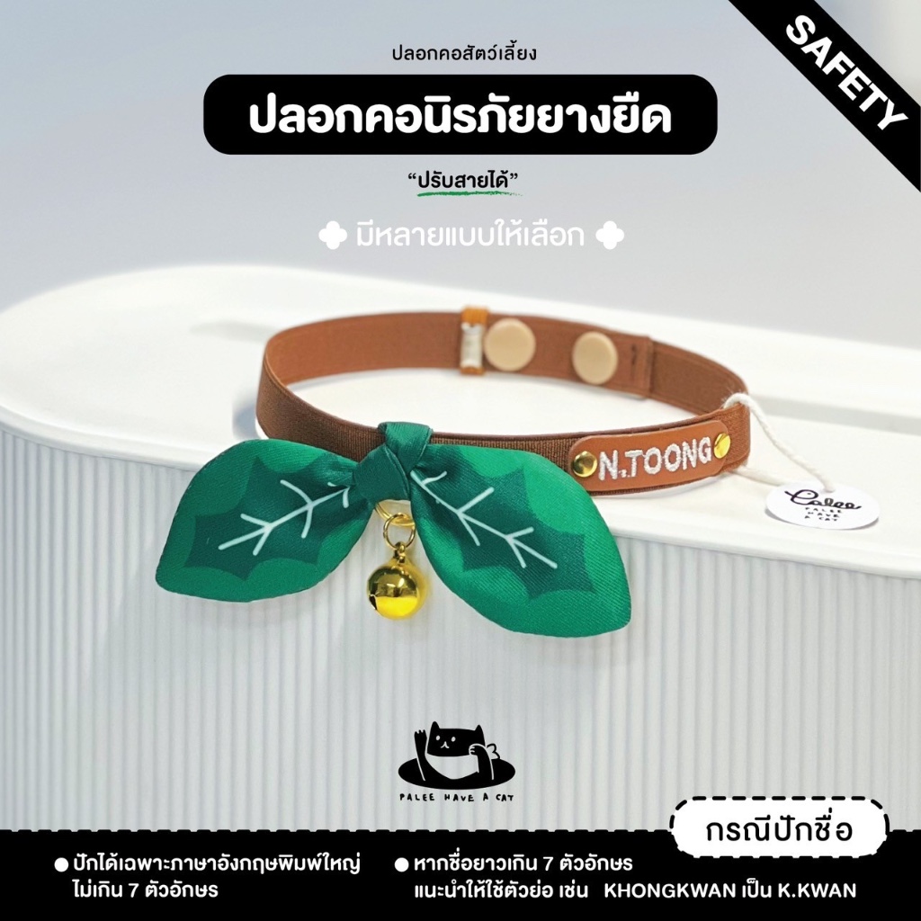 PALEE ปลอกคอแมว “รุ่นนิรภัยยางยืด+โบว์” สีฟ้า (สายยางยืด/ปักชื่อ/แมว สุนัข)