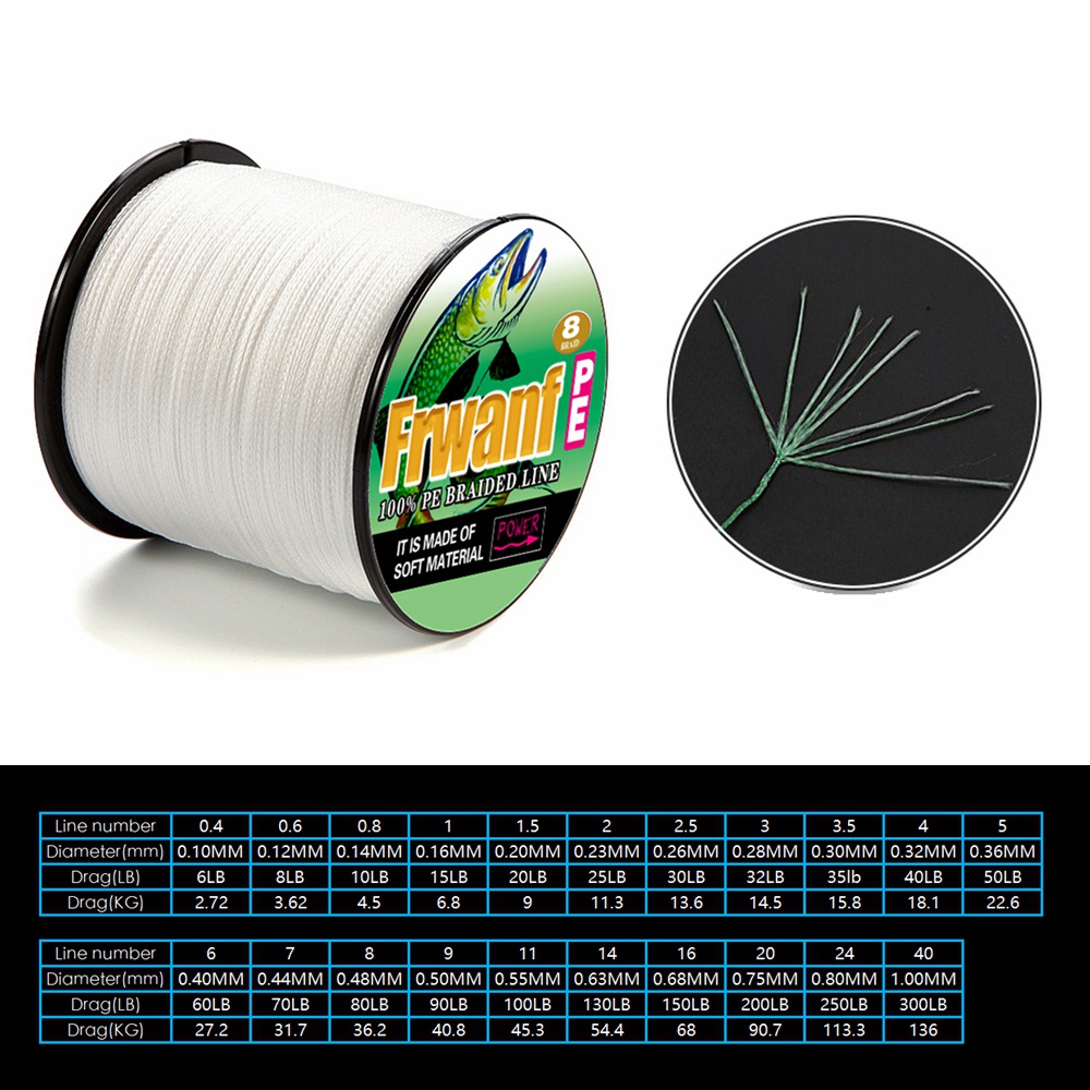 Frwanf สายเอ็นตกปลาถัก PE X8 6-300LB สีขาว 100 ม. 8 เส้น
