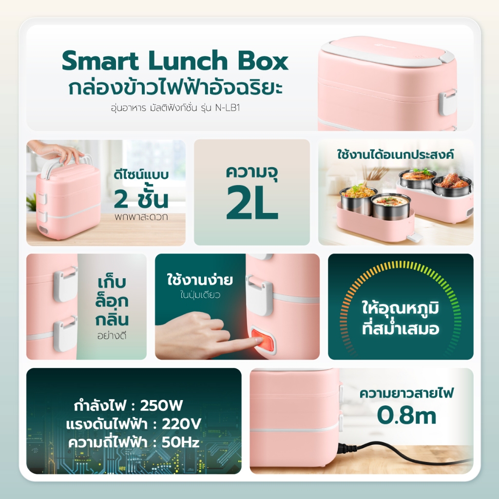 Namiko Smart Lunch Box กล่องข้าวไฟฟ้าอัจฉริยะ อุ่นอาหาร มัลติฟังก์ชั่น รุ่น N-LB1