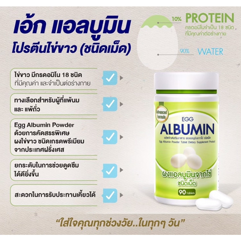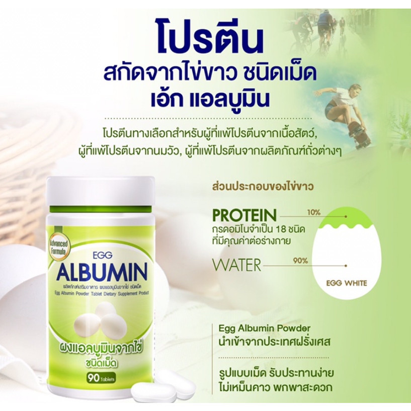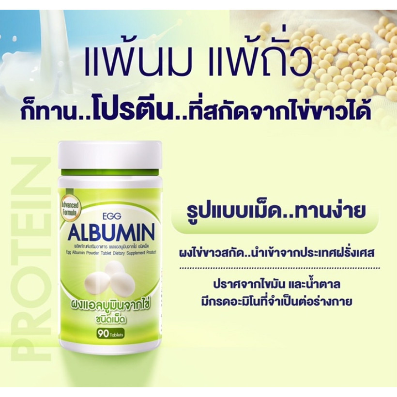 (3ขวด) Egg Albumin 90 เม็ด อัลบูมิน โปรตีน ไข่ขาว ชนิดเม็ด // 3เม็ด เทียบเท่าไข่ขาว 1ฟอง