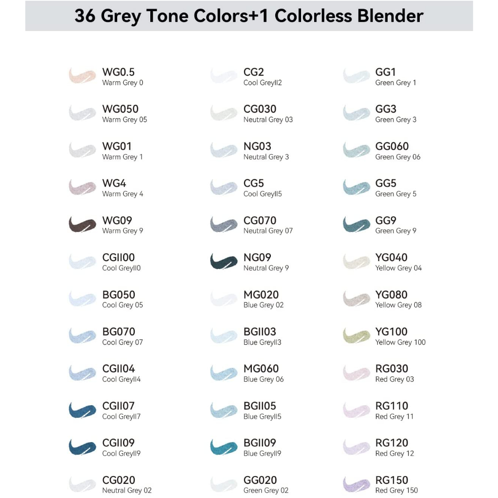 FOLIO ART : ปากกามาร์คเกอร์ Ohuhu เซต Gray Tone 36 สี (Honolulu Series) 90086