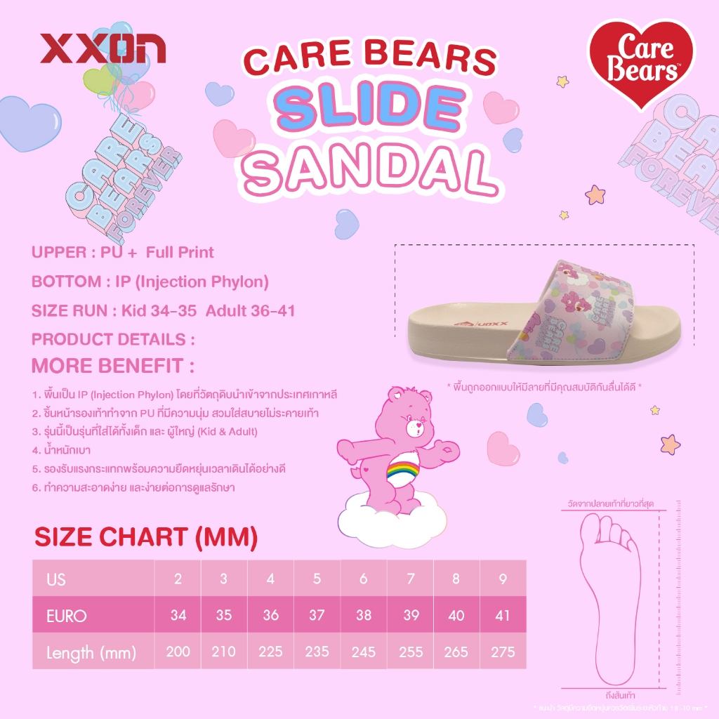 🧸 Care Bears Slide Sandal 🧸 รองเท้าแตะ Xxon x Care Bears (kid & adult) I Care Bears ลิขสิทธิ์ประเทศไทย