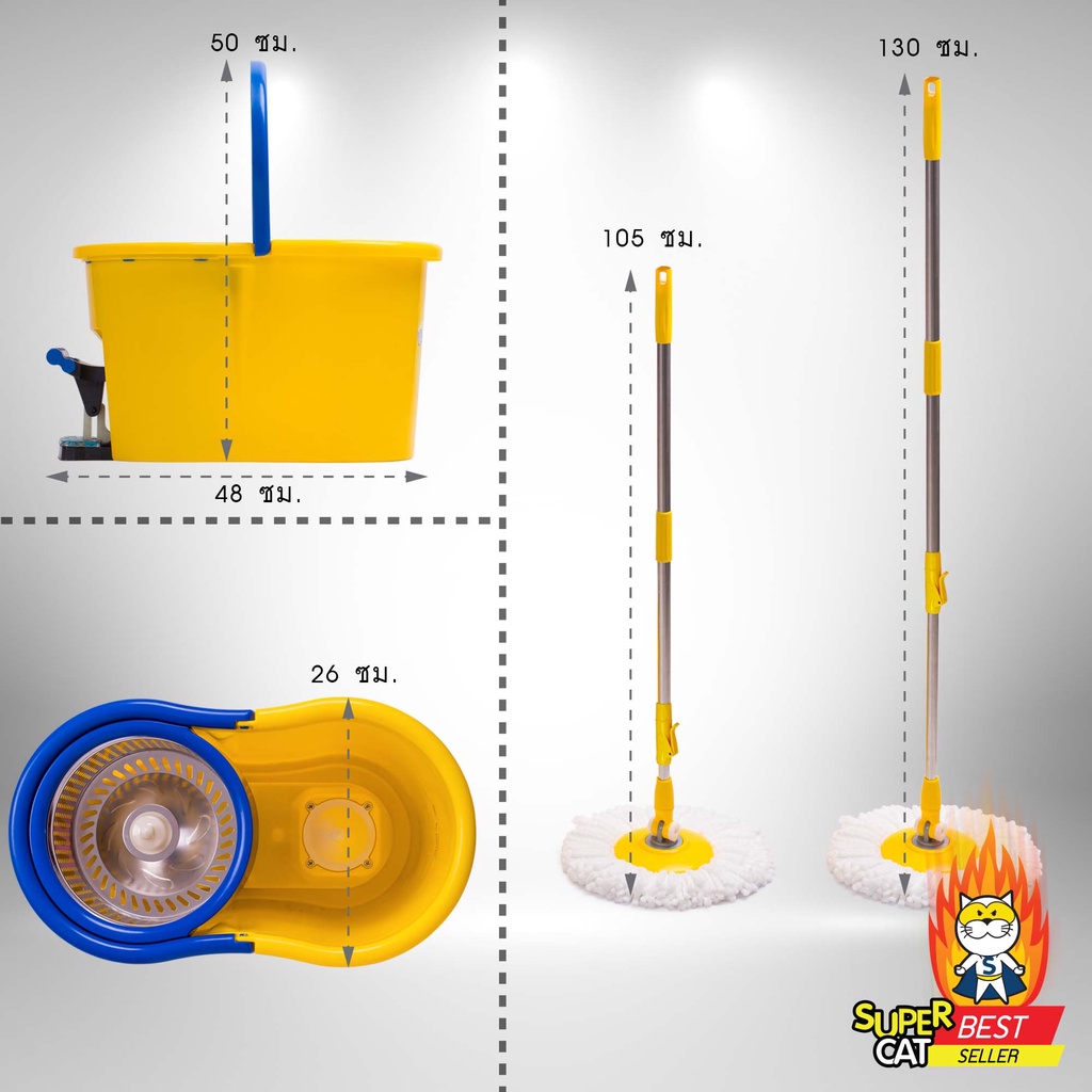 SUPERCAT ชุดถังปั่นพร้อมไม้ม็อบถูพื้น รุ่นแมวบิน [ยกลัง 4 ถัง][รับประกัน 2 ปี] ( 11082 )