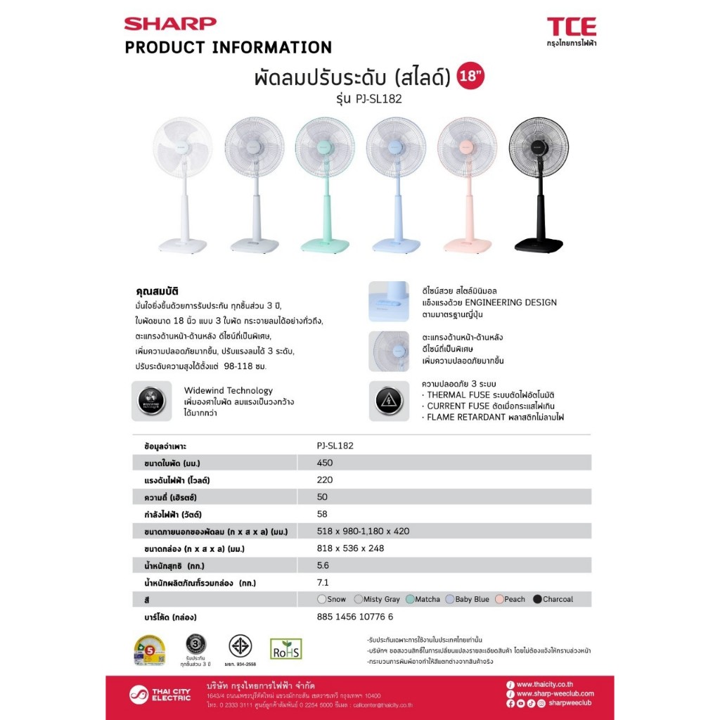 SHARP พัดลมสไลด์ 18 นิ้ว รุ่น PJ-SL181 ; PJ-SL182 ปรับระดับได้ (ของแท้รับประกันศูนย์นาน 3 ปี)
