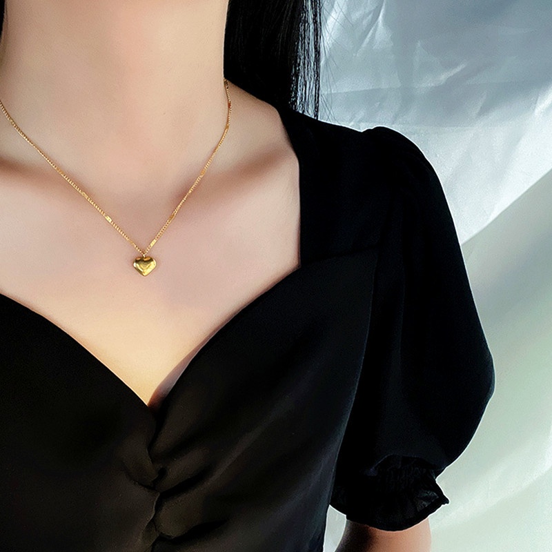 OYJR สร้อยสแตนเลสทองชุด 18K จี้หัวใจ แบบเรียบๆ แฟชั่นสําหรับผู้หญิง