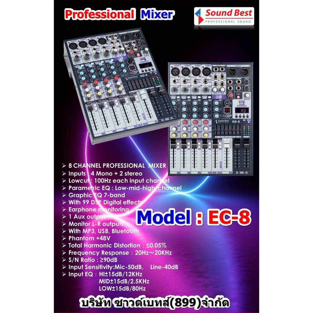SOUNDBEST EC-8 มิกเซอร์ 8CH เอฟเฟค 99DSP อินเตอร์เฟส Bluetooth มิกซ์ Mixer EC8