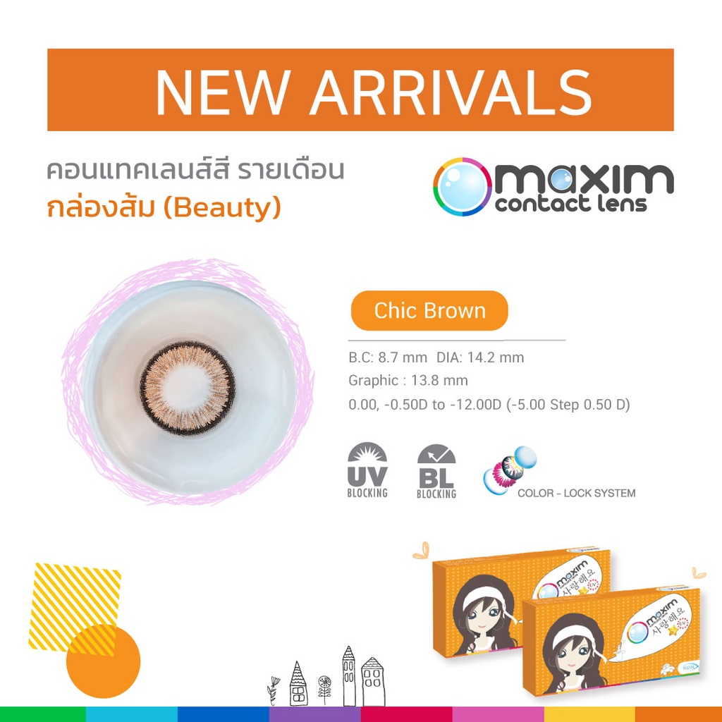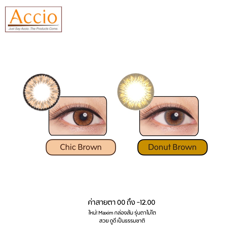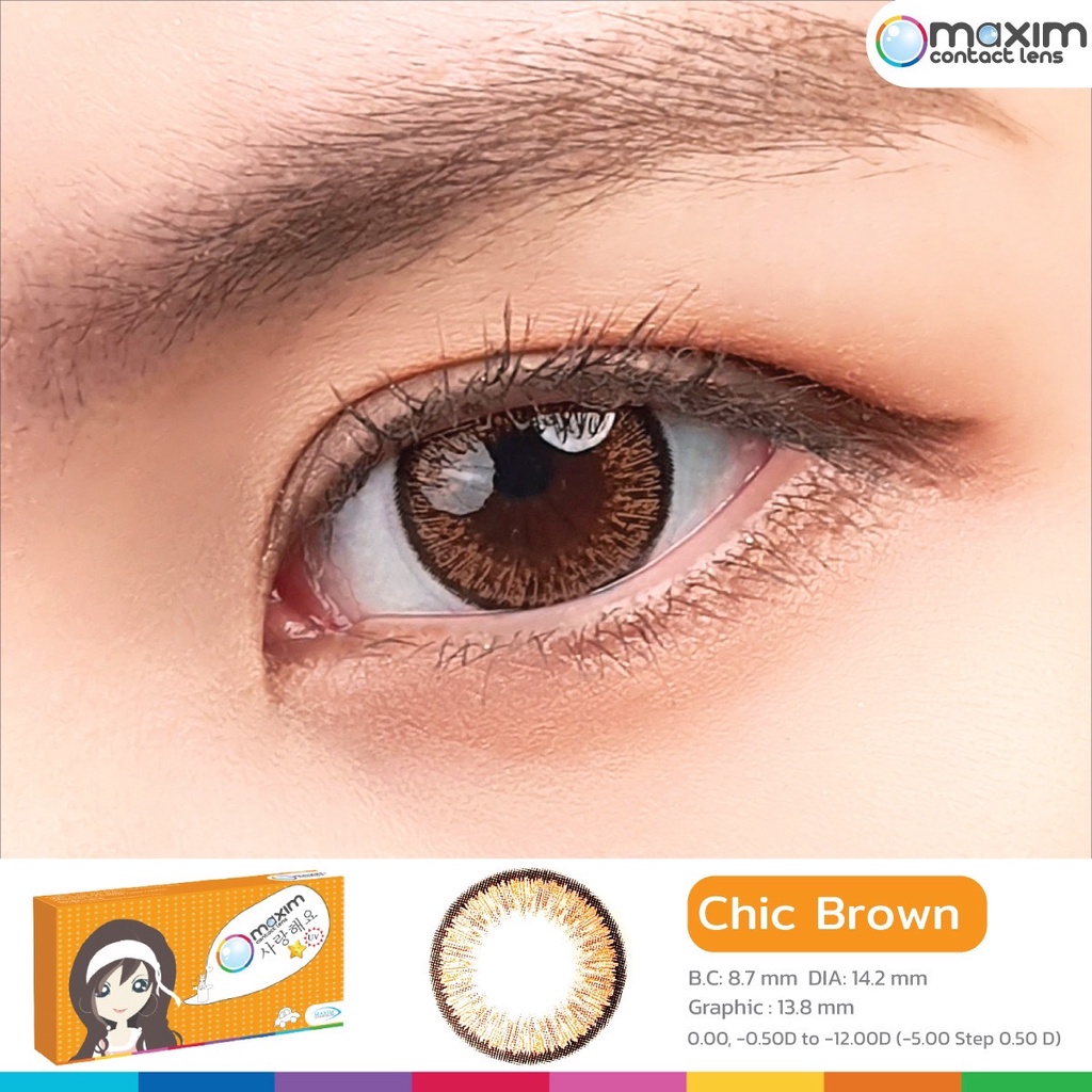 ใหม่! Maxim Beauty คอนแทคเลนส์สี รายเดือน 2 ชิ้น(1คู่) สีน้ำตาล Chic Brown ค่าสายตา 00 ถึง -12.00