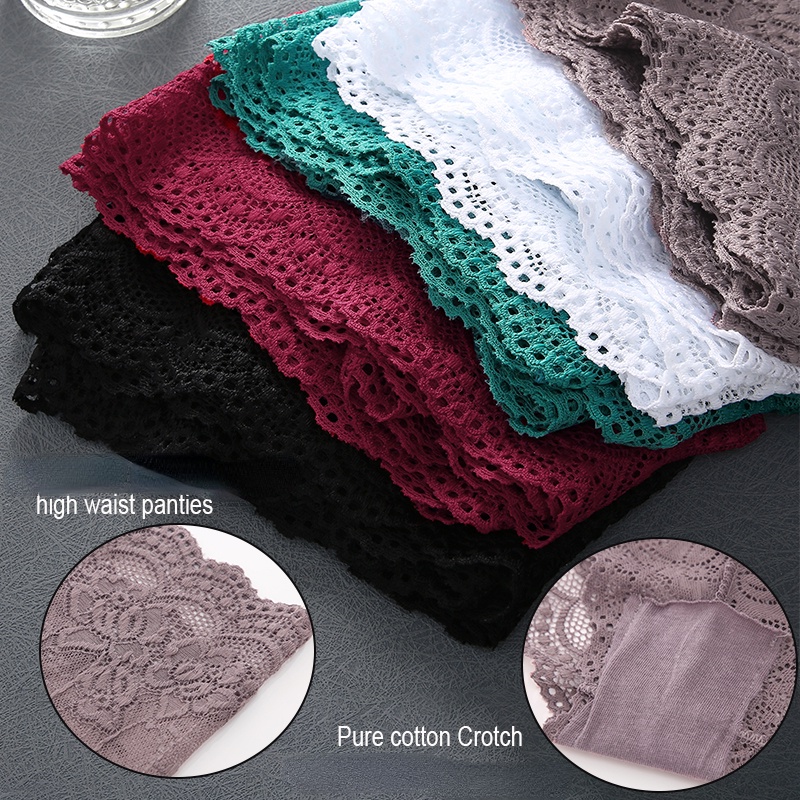 Finetoo กางเกงชั้นใน เอวสูง ลายดอกไม้ ลูกไม้ สําหรับผู้หญิง S-XL 2 ชิ้น/ชุด