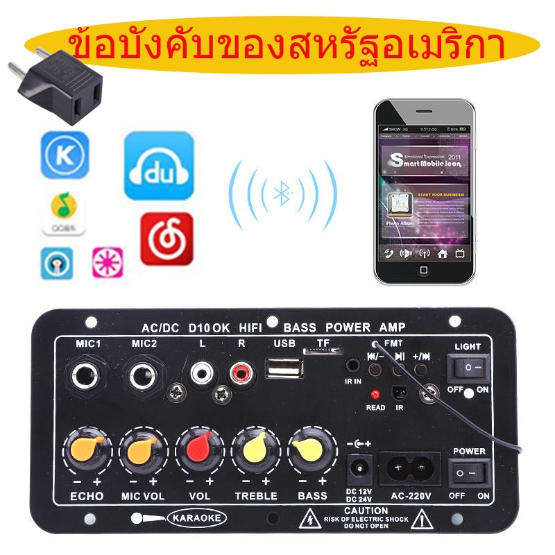 D10 แอมป์จิ๋วแอมป์บลูทูธ 12V พร้อมจอแสดงผล แอมป์จิ๋วแรงๆ12v 24v เพาเวอร์แอมป์ Amplifiers