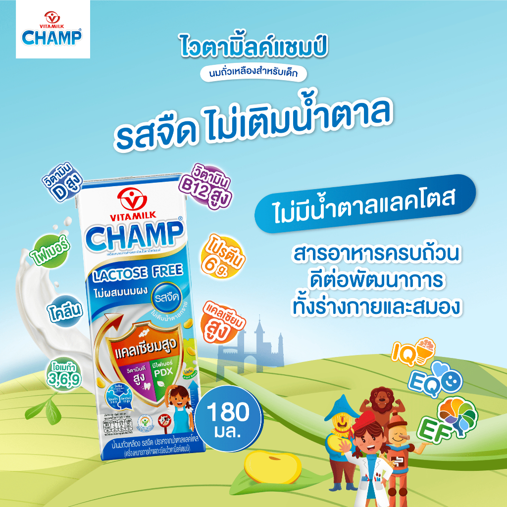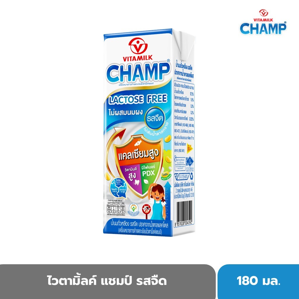 ไวตามิ้ลค์ แชมป์ รสจืด แลคโตสฟรี 180 มล. X 48 กล่อง