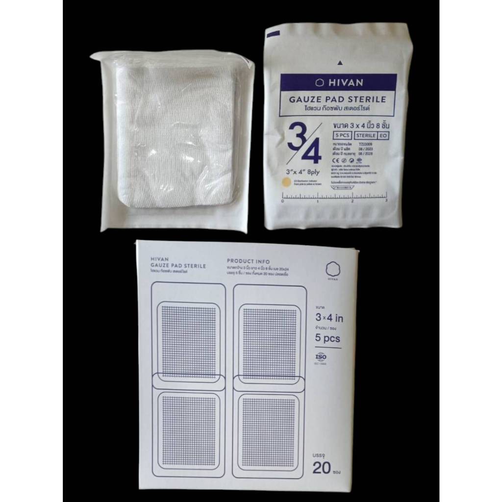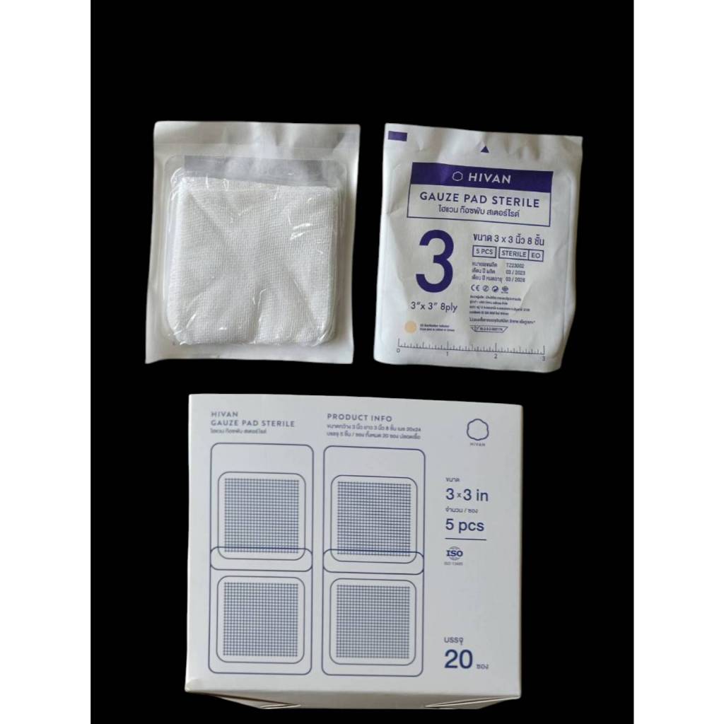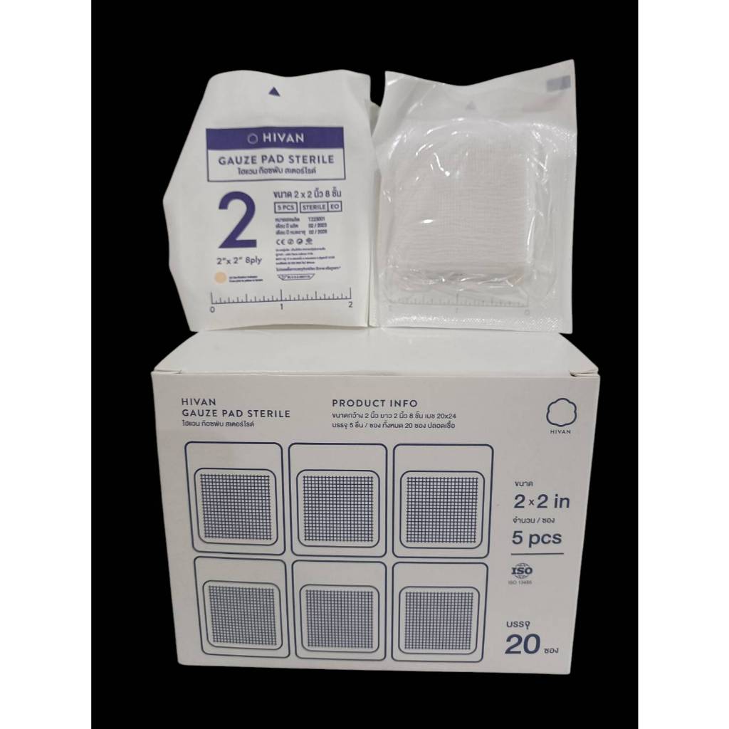 HIVAN-ผ้าก๊อซสเตอร์ไรด์ 5ชิ้น/ซอง , 20ซอง/กล่อง ผ้าก๊อซพับ ผ้าก๊อซพับปลอดเชื้อ ก๊อซแพด ก๊อซแผ่น