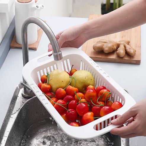 ตะกร้าล้างผัก ตะแกรงล้างผัก ผลไม้ ตะแกรงอเนกประสงค์ ตะแกรงพลาสติก กะละมังล้างผัก ผลไม้ แบบยืดหดได้ มีรูระบายน้ำ