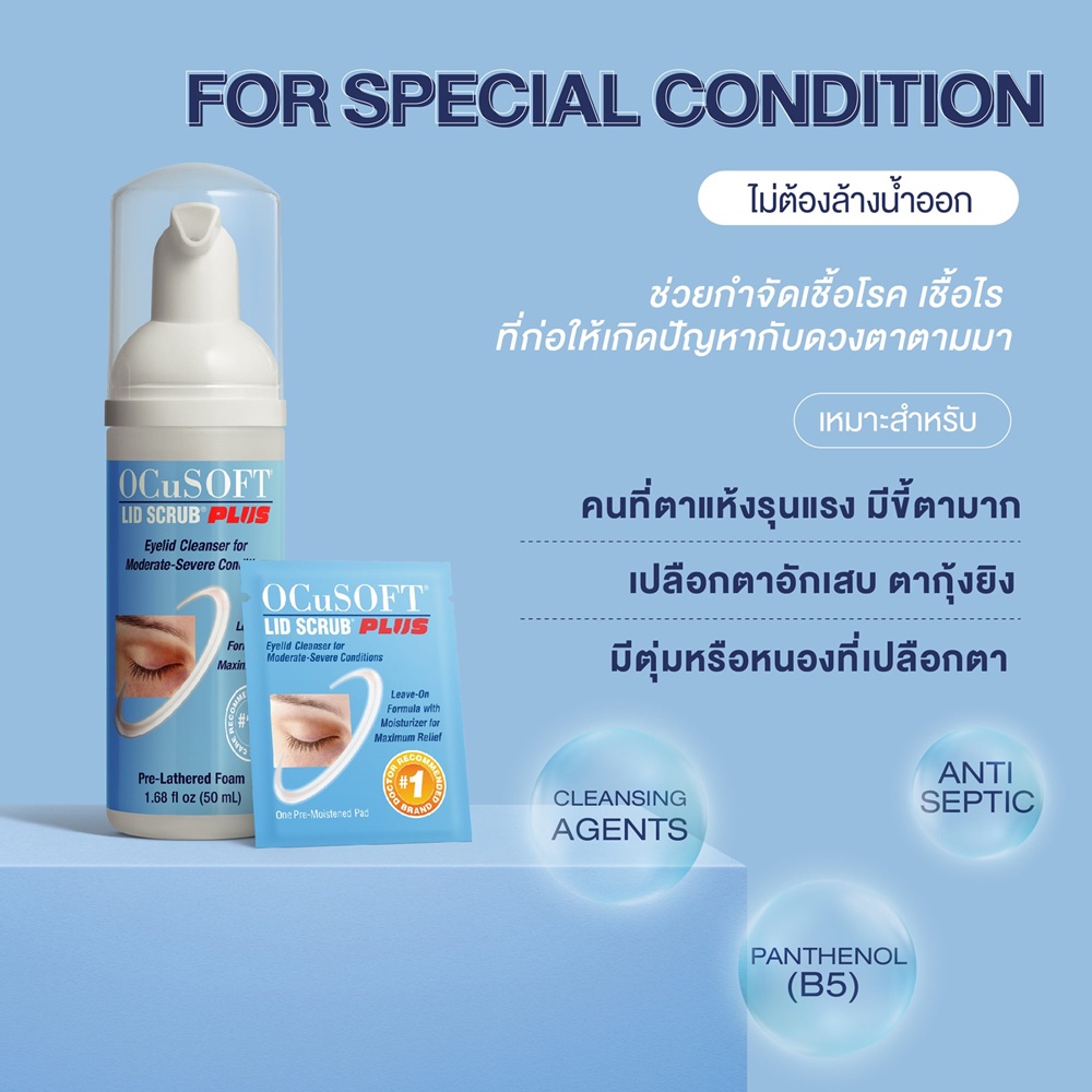 OcuSOFT Lid Scrub Plus Foam 50ml - อ๊อกคิวซอฟท์ ลิด สครับ พลัส โฟมทำความสะอาดบริเวณรอบดวงตา สูตรพลัส ไม่ต้องล้างออก
