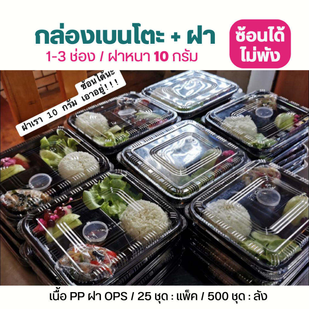 NLTY เบนโตะกล่องอาหาร+ฝา ดำ / แดง 1-3 ช่อง 25ชุด/แพ็คฝาหนา10กรัม ซ้อนได้ไม่พัง