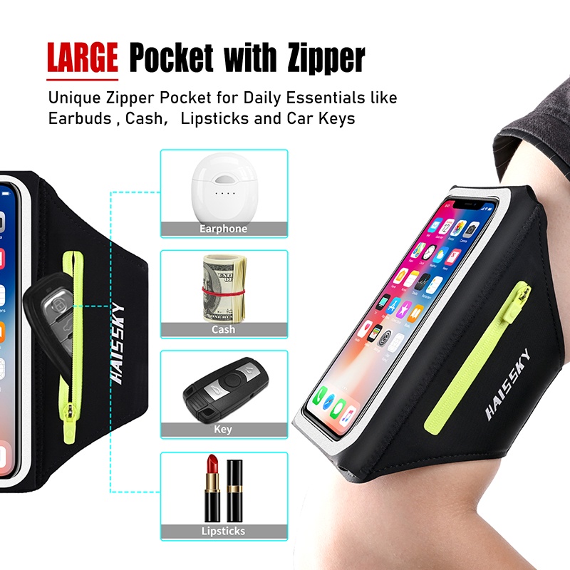 HAISSKY อัพเกรดใหม่ Stereoscopic วิ่งกีฬา Armband กระเป๋าสําหรับ iPhone 17 16 15 14 13 12 11 Pro Max 14 Plus XR กระเป๋าซิปแขนสําหรับปุ่มหูฟัง
