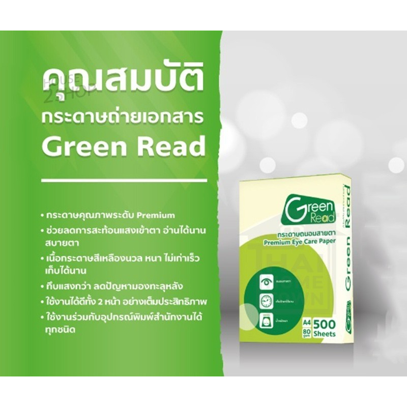 กระดาษA4 GreenRead กระดาษถนอมสายตา 80แกรม (1ลังมี 5 รีม) 1 คำสั่งซื้อ ได้ 1 ลัง(ราคายกลัง)