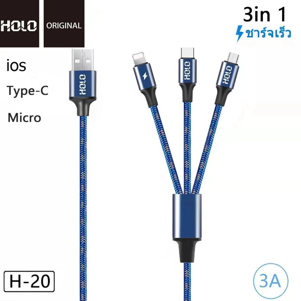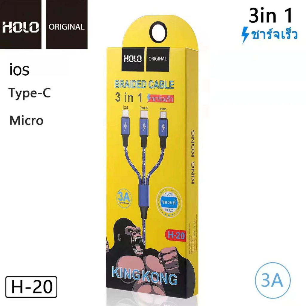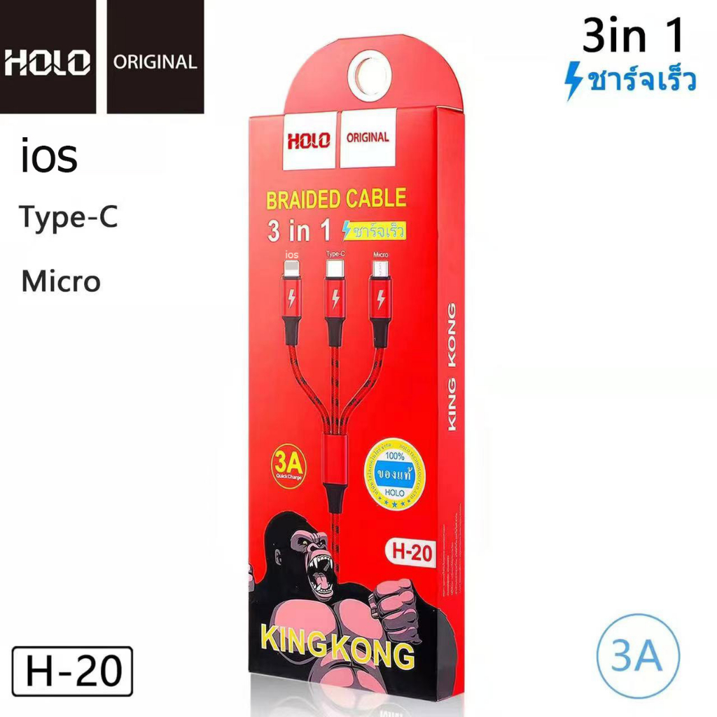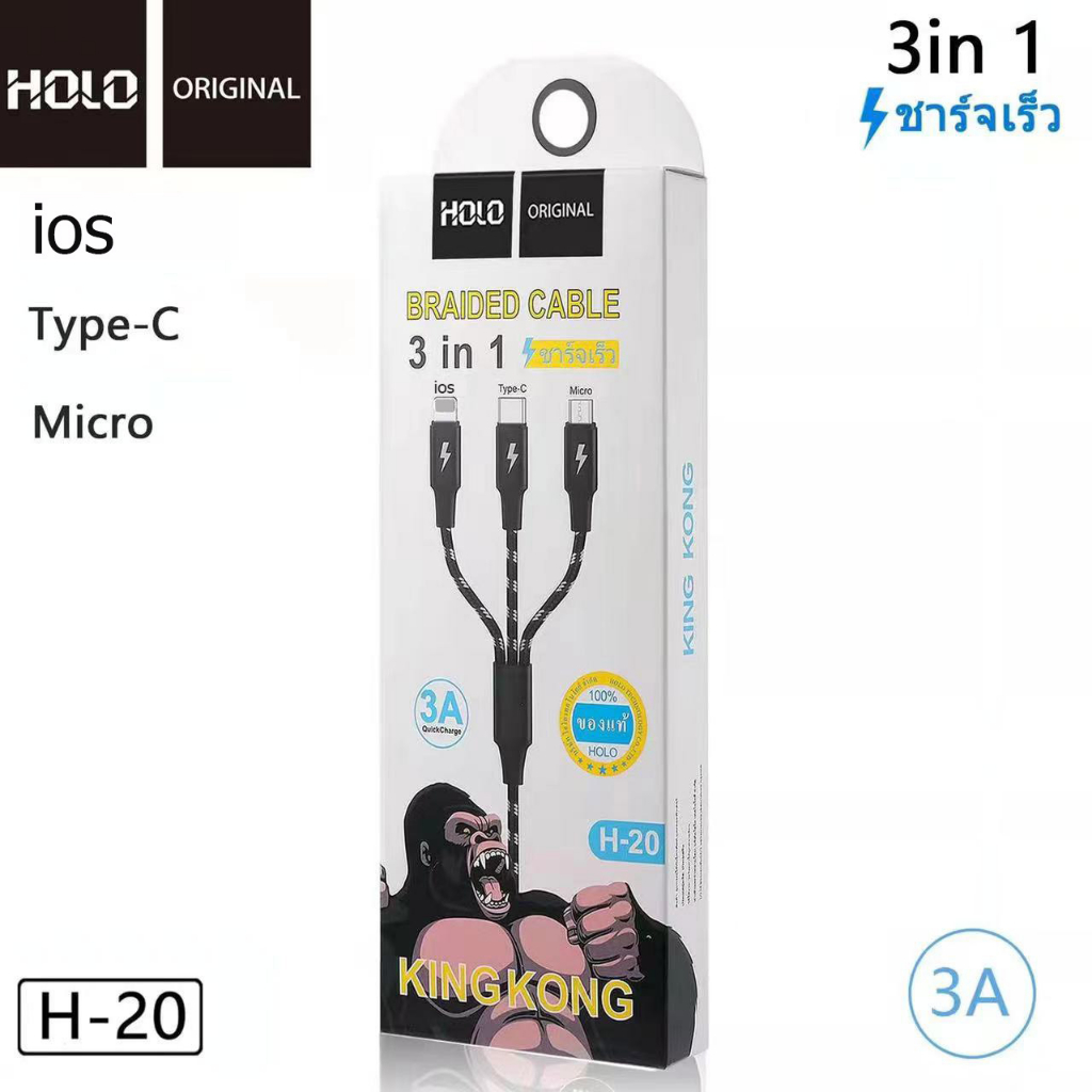 HOLO H-20 3in1 1.2เมตร 3A King Kong สำหรับ Micro / ios ได้ทั้ง Android
