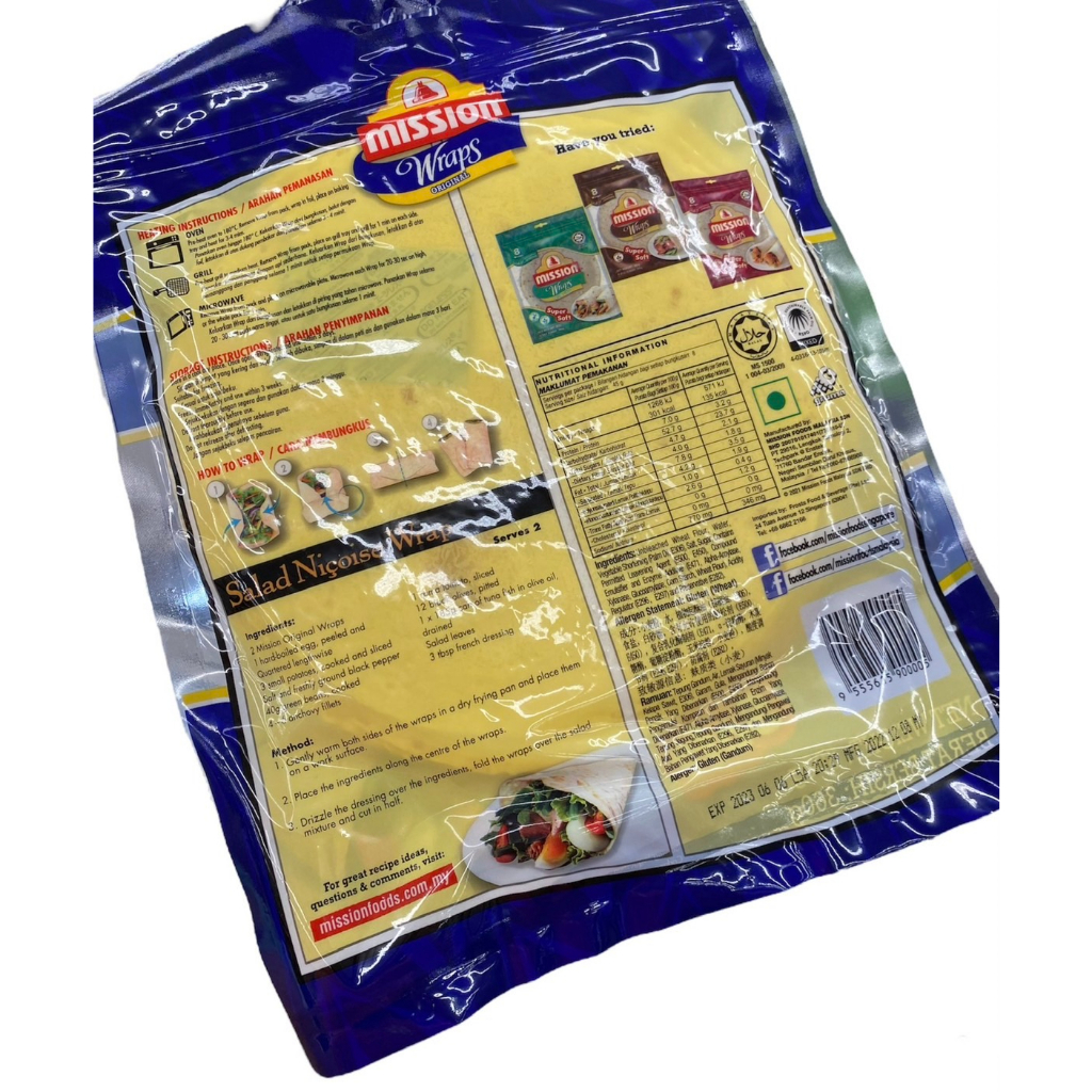 Mission Wraps Naan Pita สินค้ามีอายุ2-3เดือน แป้งแรป แผ่นแป้งสาลีสำเร็จรูป 360 กรัม ทาโก้ ตอติญ่า
