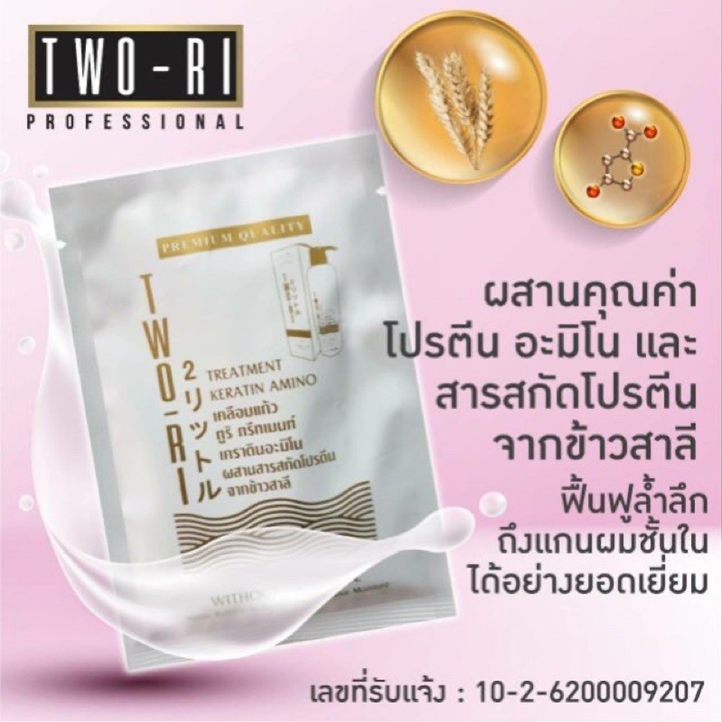 (ขายส่ง ฿33) ทูริ เคลือบแก้ว ทรีทเมนท์ เคราตินอะมิโน บำรุงเส้นผม Two-Ri Treatment Keratin Amino 40g.