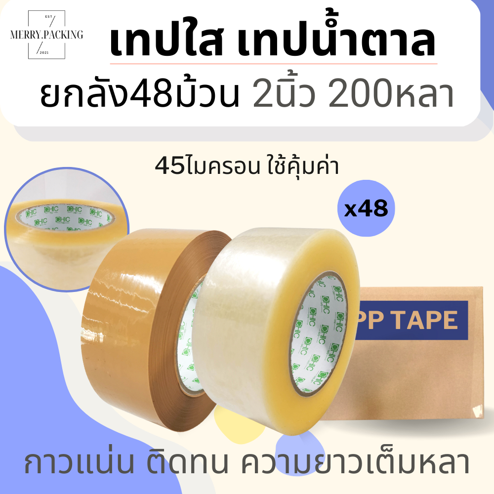 (ยกลัง/48ม้วน/200หลา) เทปใส เทปสีขุ่น 2 นิ้ว 200 หลา 45 ไมครอน OPP tape สำหรับปิดกล่อง แกนเขียว