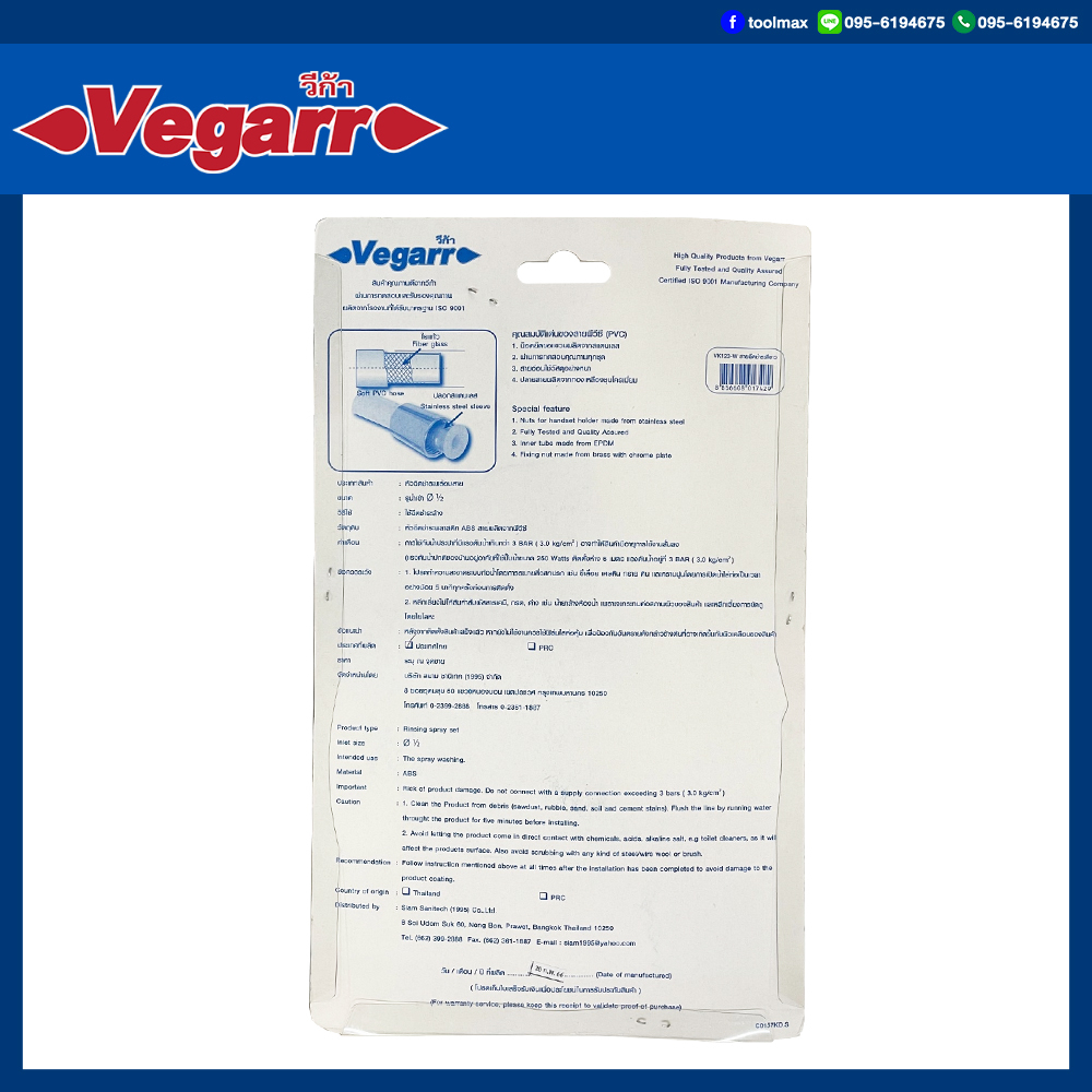 หัวฉีดน้ำชำระ พร้อมสาย สีขาว ยี่ห้อ Vegarr(วีก้า) รุ่น VK123W