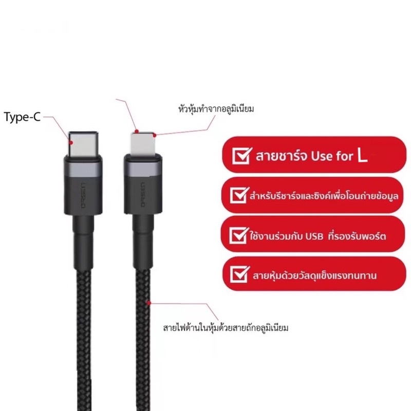 [ แพ็คส่ง 1 วัน❗️] Eloop S51 สายชาร์จเร็ว USB Type C 3A รองรับถ่ายโอนข้อมูล Type C to for L Cable