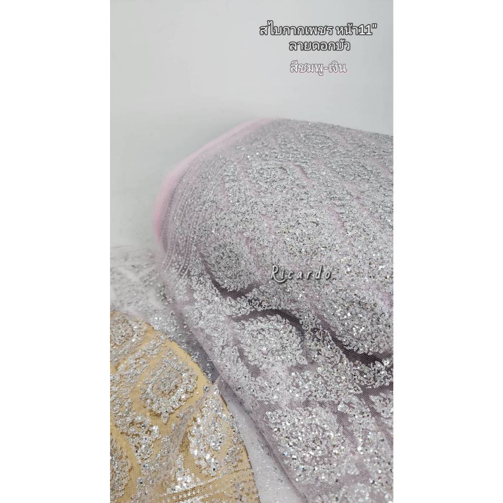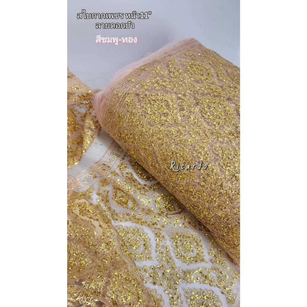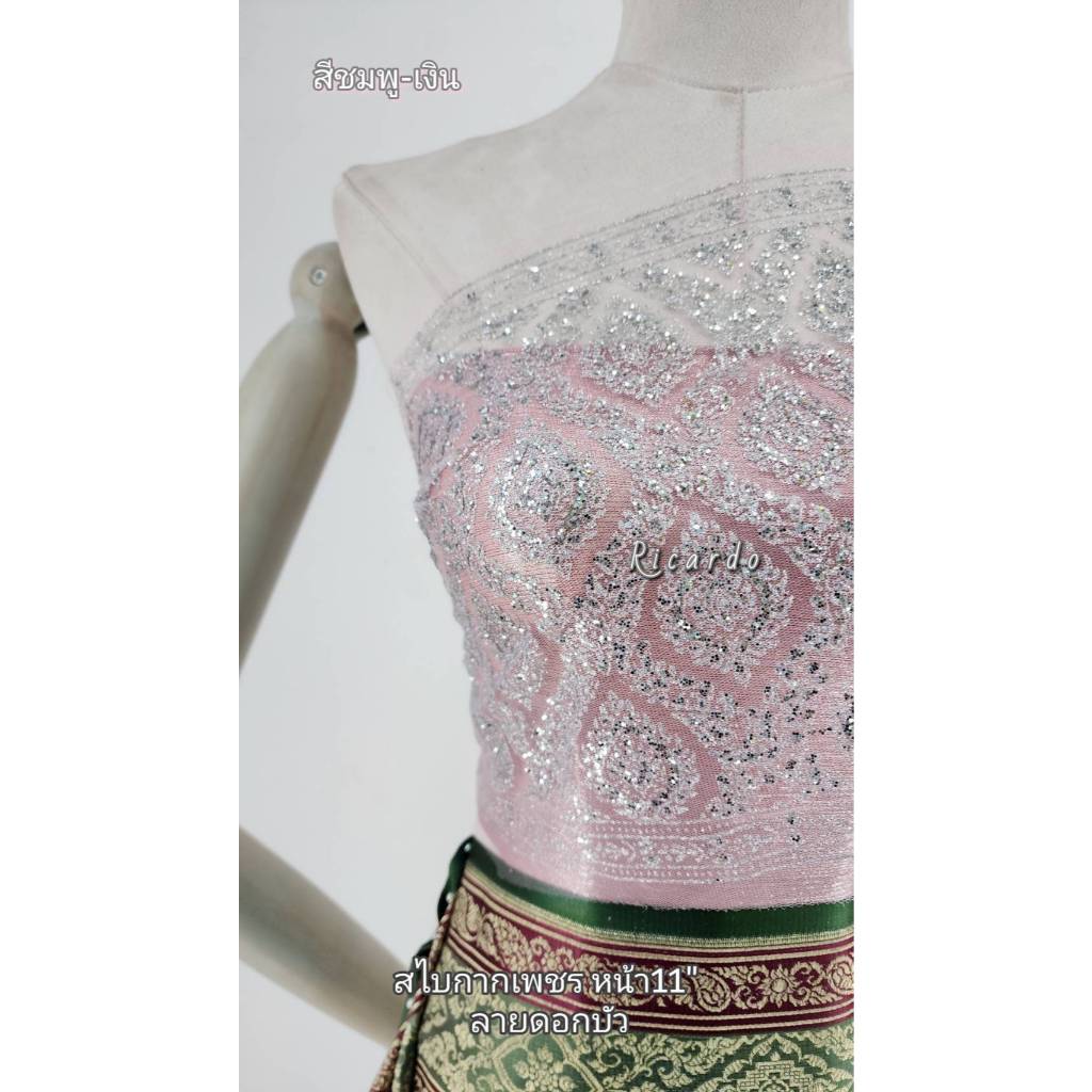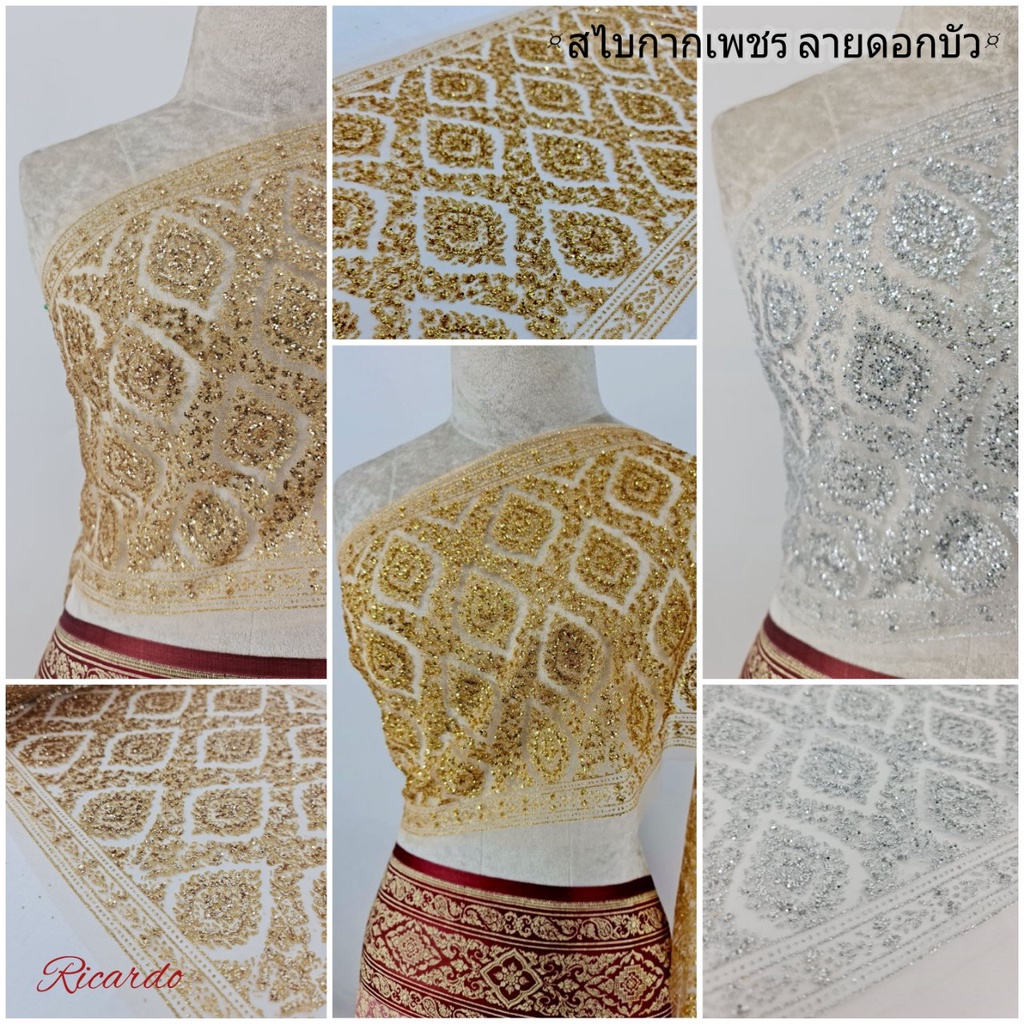สไบกากเพชร ลายดอกบัว (หน้า 11นิ้ว) (1ชิ้นยาว3เมตร)(ผ้ายังไม่ได้เย็บเก็บริม เก็บปลายผ้า)