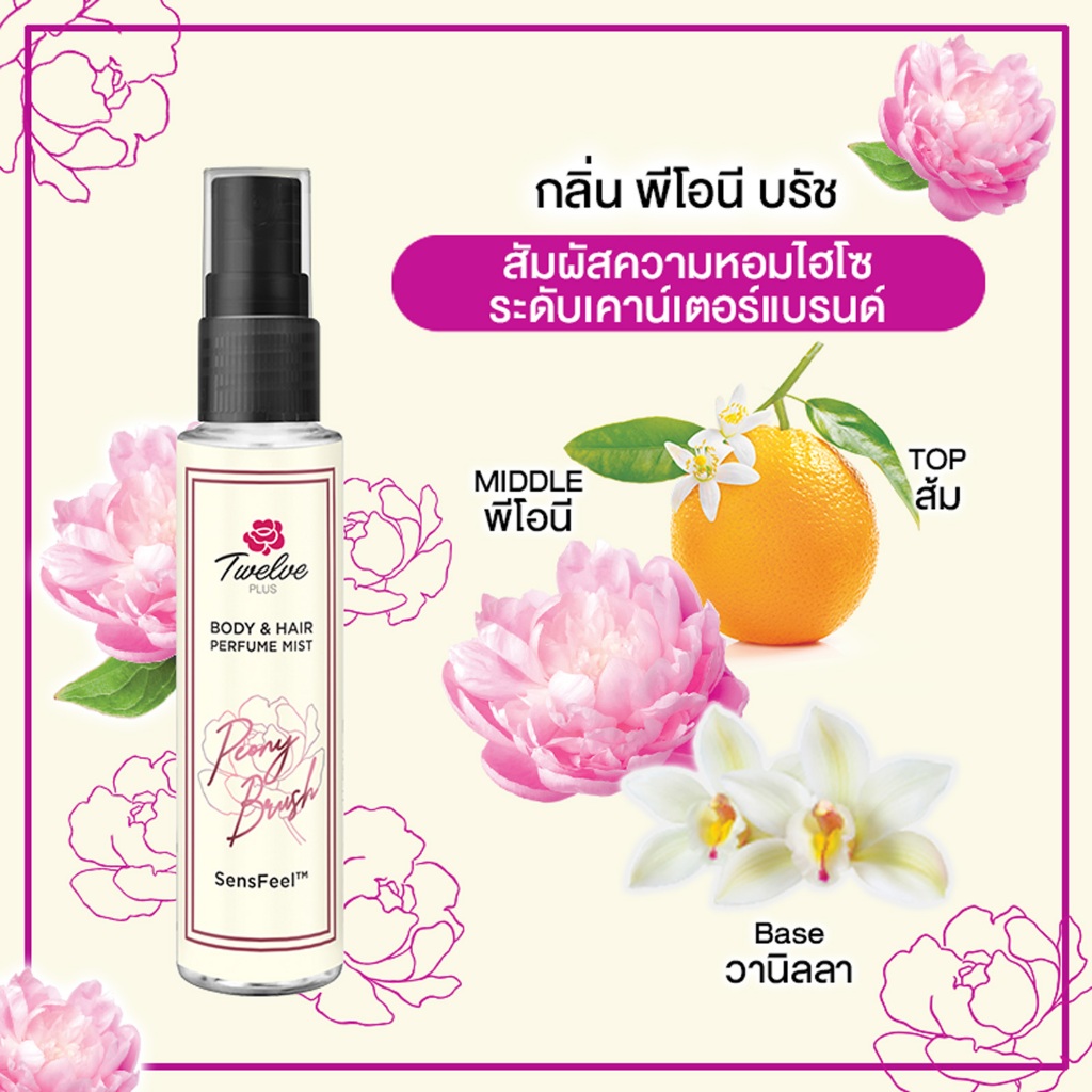 [ใหม่]Twelve ทเวลฟ์พลัสบอดีแอนด์แฮร์เพอร์ฟูม มิสท์ พีโอนี บรัช/ Twelve Plus Body & Hair Perfume Mist Peony Brush 25ml x3