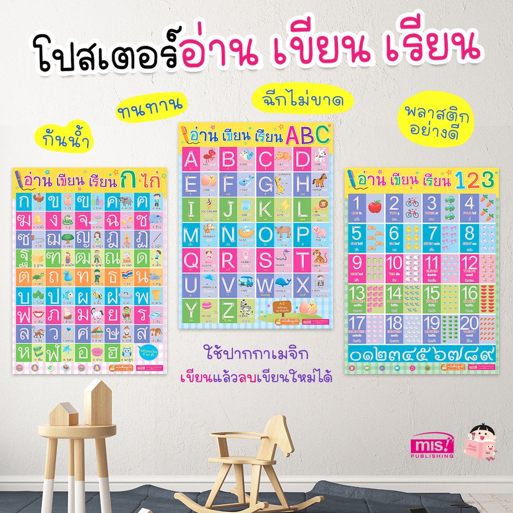 MISBOOK โปสเตอร์พลาสติก อ่าน เขียน เรียน -ใช้ร่วมกับปากกาพูดได้ - (ซื้อแยกได้)