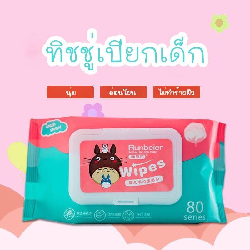 (5แถม5)🍓 Runbeier 🍓 ทิชชู่เปียก 80 แผ่น ทิชชู่เปียกทำความสะอาด กระดาษเปียก Baby Wipes ผ้านุ่มชุ่มชื่น ถูกที่สุด