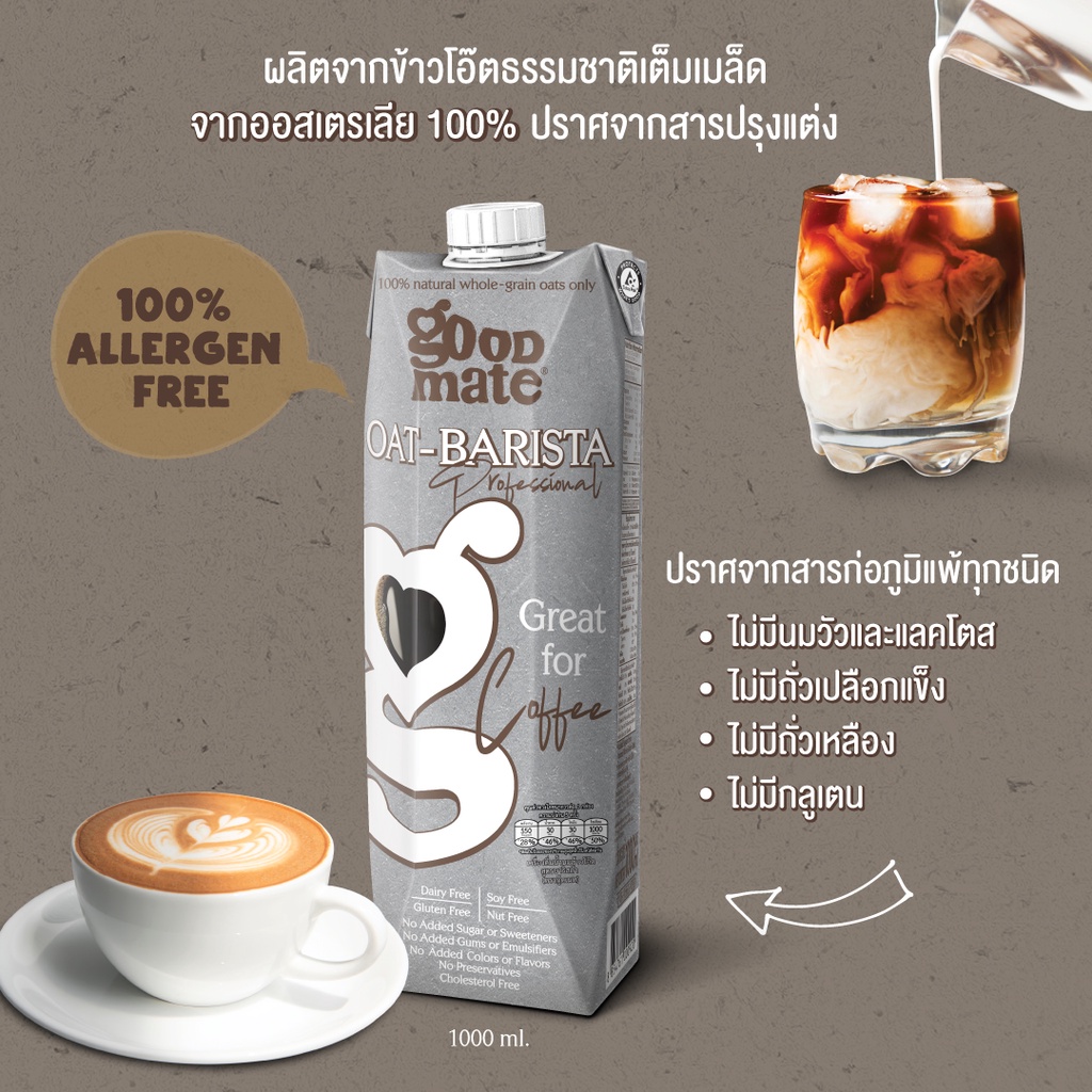 Goodmate นมโอ๊ต สูตรบาริสต้า ขนาด 1000 มล. (3 กล่อง) + สูตรช็อกโกแลตดีลักซ์ ขนาด 1000 มล. (3 กล่อง) - (1 ลัง: 6 กล่อง)