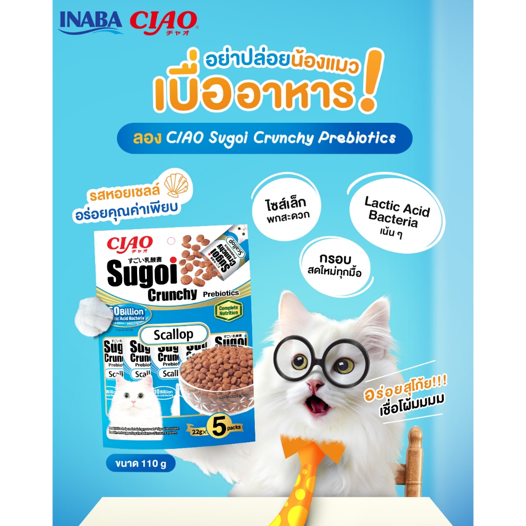 Ciao Sugoi Crunchy Prebiotics เชา สุโก้ย ครันชี่ พรีไบโอติกส์ แบบเม็ด แมว 4เดือนขึ้นไป 22gx5ซอง