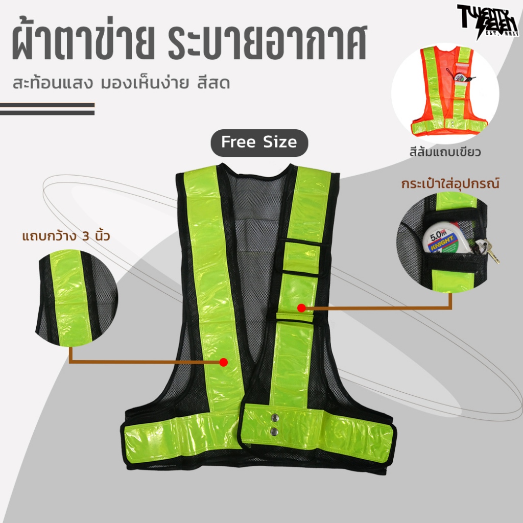 เสื้อกั๊กสะท้อนแสง เสื้อจราจร แถบ 3 นิ้ว(ใหญ่พิเศษ) มีกระเป๋าหน้า ผ้าตาข่ายไม่ร้อน รับสกรีนไม่มีขั้นต่ำ (รุ่น R3-VP)