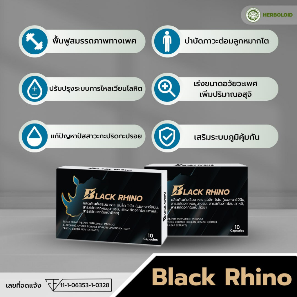 Black Rhino ผลิตภัณฑ์บำรุงต่อมลูกหมาก - 3กล่อง