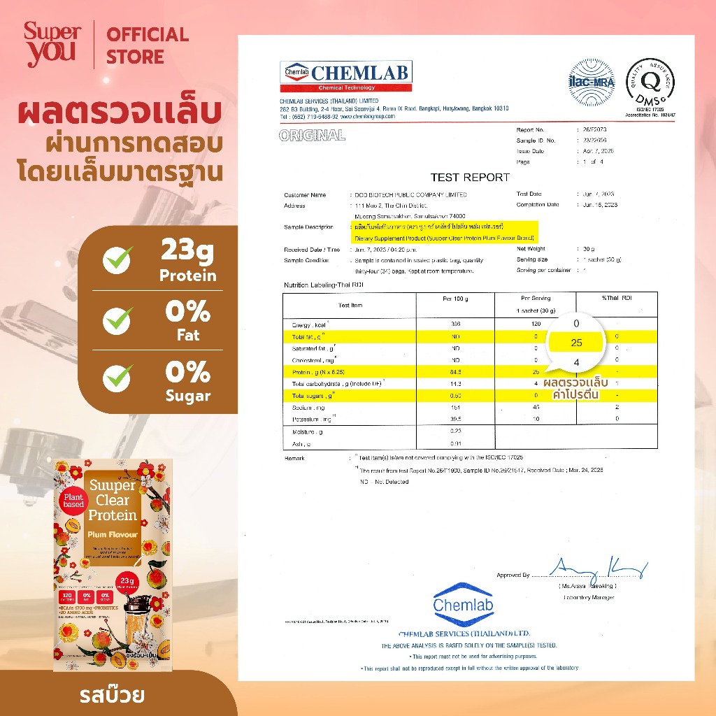 ซูเปอร์ เคลียร์ โปรตีน "รส บ๊วย" โปรตีนใส (Suuper Clear Protein "Plum") - โปรตีนพืช (Plant Protein) โปรตีนใส - Super You
